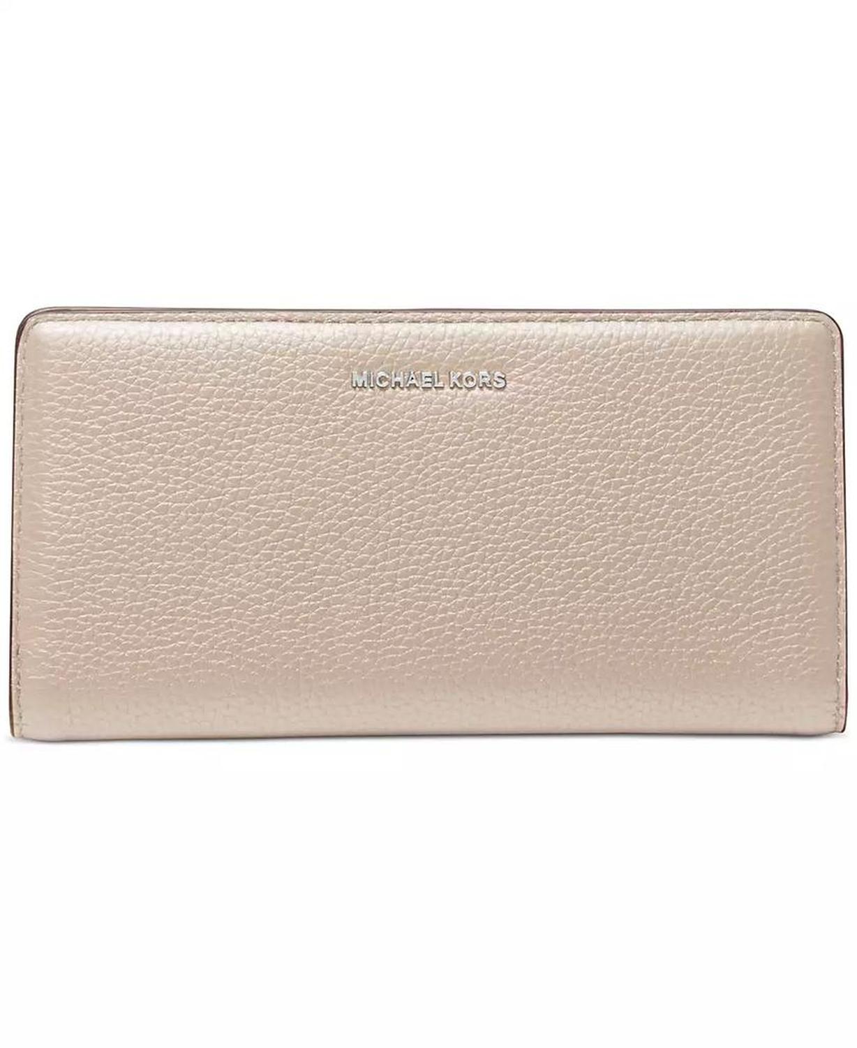 Sophisticated and functional, this leather wallet by MICHAEL Michael Kors keeps you organized with the array of card slots and exterior zip pocket for change.