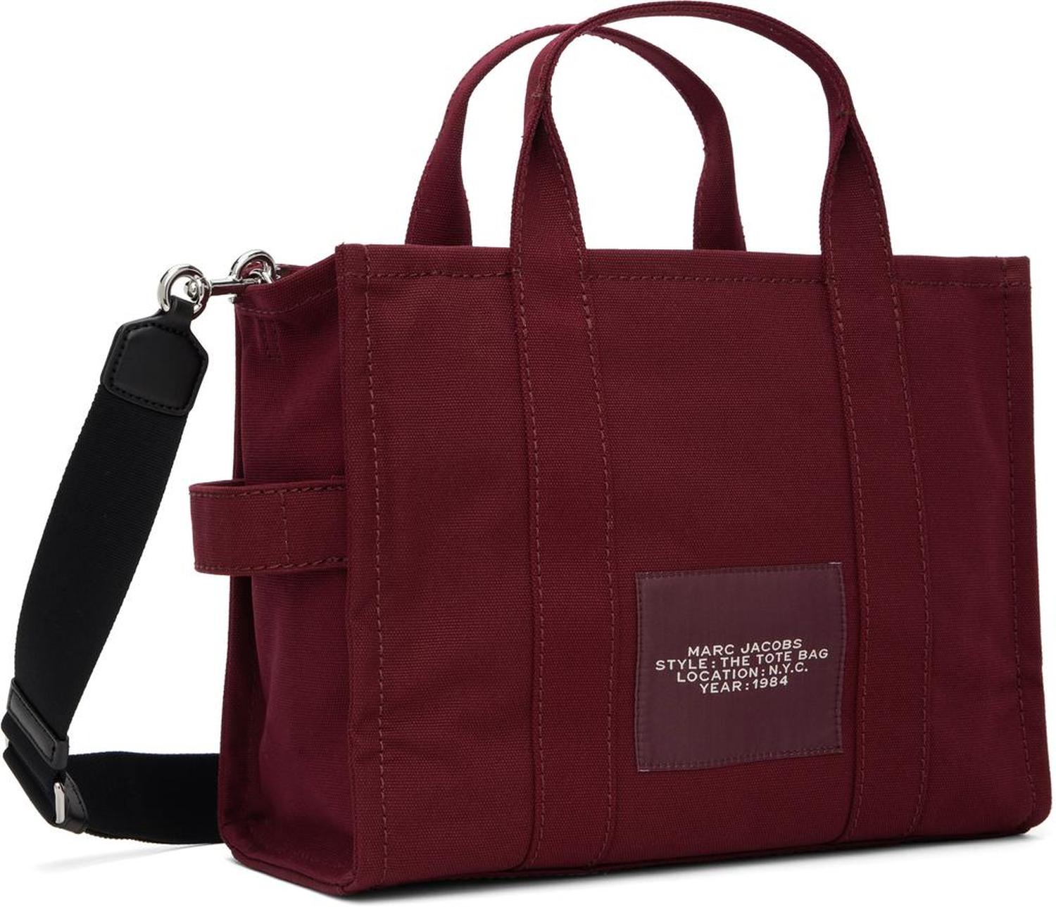 Marc Jacobs Burgundy 'The Canvas Medium' Tote Cotton canvas tote in burgundy. · Twin rolled carry handles · Adjustable and detachable crossbody strap · Logo printed at face · Carry handle at side · Logo patch at back face · Zip closure · Patch and zip pockets at interior · Unlined · H9.75" x W13" x D6" Supplier color: Oxblood Textile. Made in Viet Nam. 242190F049047