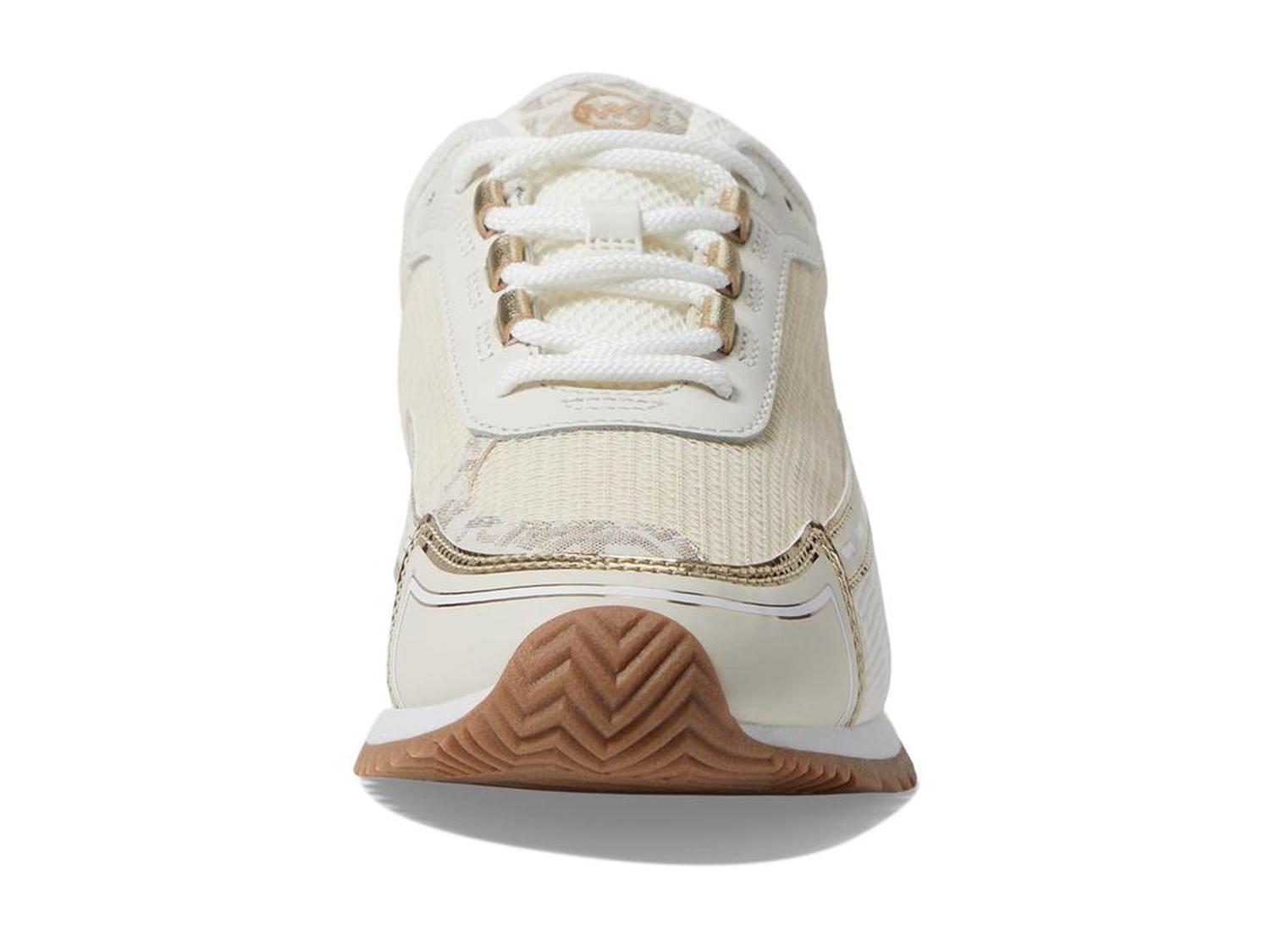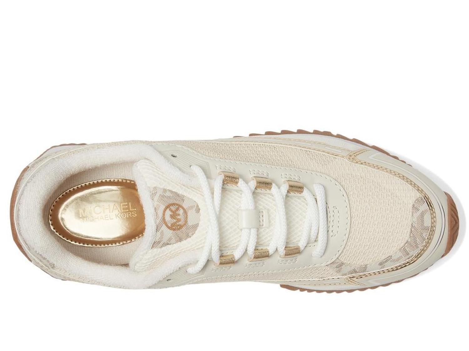 Your feet will thank you in Byrdie Traine by MICHAEL Michael Kors®. Featuring a chic PU upper and breathable textile lining for all-day comfort. The EVA insole offers superior cushioning, while the durable rubber outsole ensures reliable traction. With a secure lace-up closure, these trainers provide a perfect fit for any activity. Effortlessly combining fashion and function, the Byrdie Trainer is your go-to for both casual outings and active adventures.