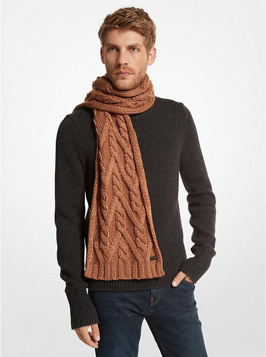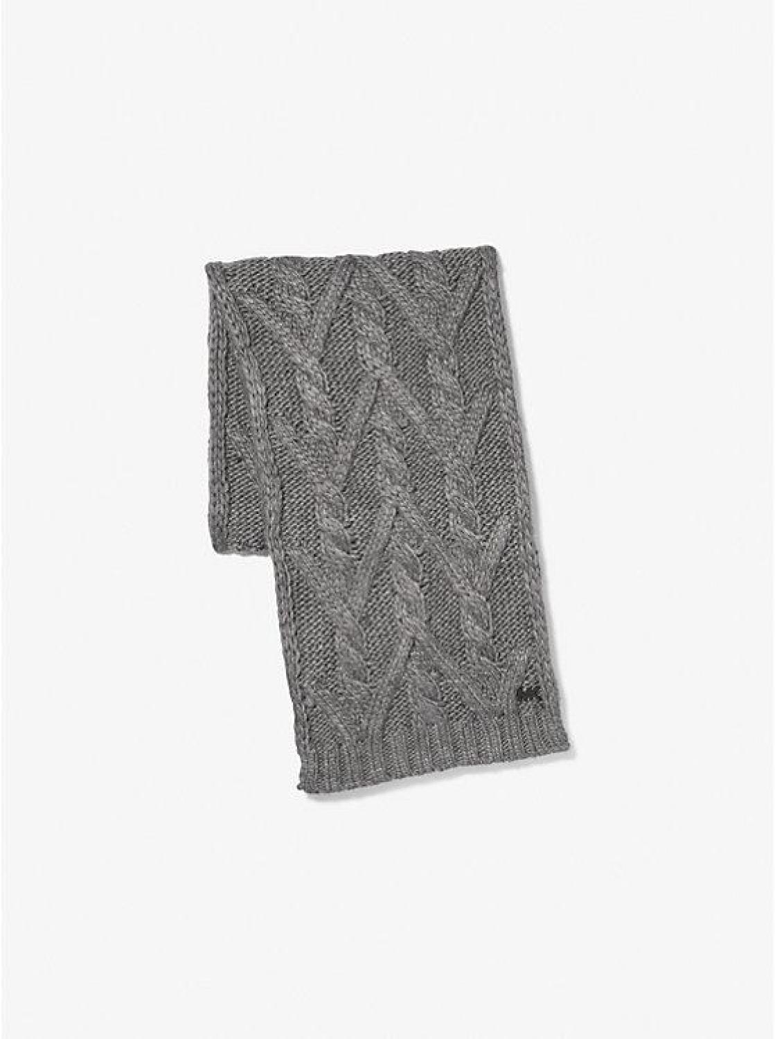 • Defined by an intricate cable-knit design, this classic scarf is a wardrobe essential that will stand the test of time. It’s woven from ultra-soft Icelandic yarn for a cozy finish, while a subtle “MK” plaque lends a luxe finishing touch. Team it with the coordinating hat to complete your look.