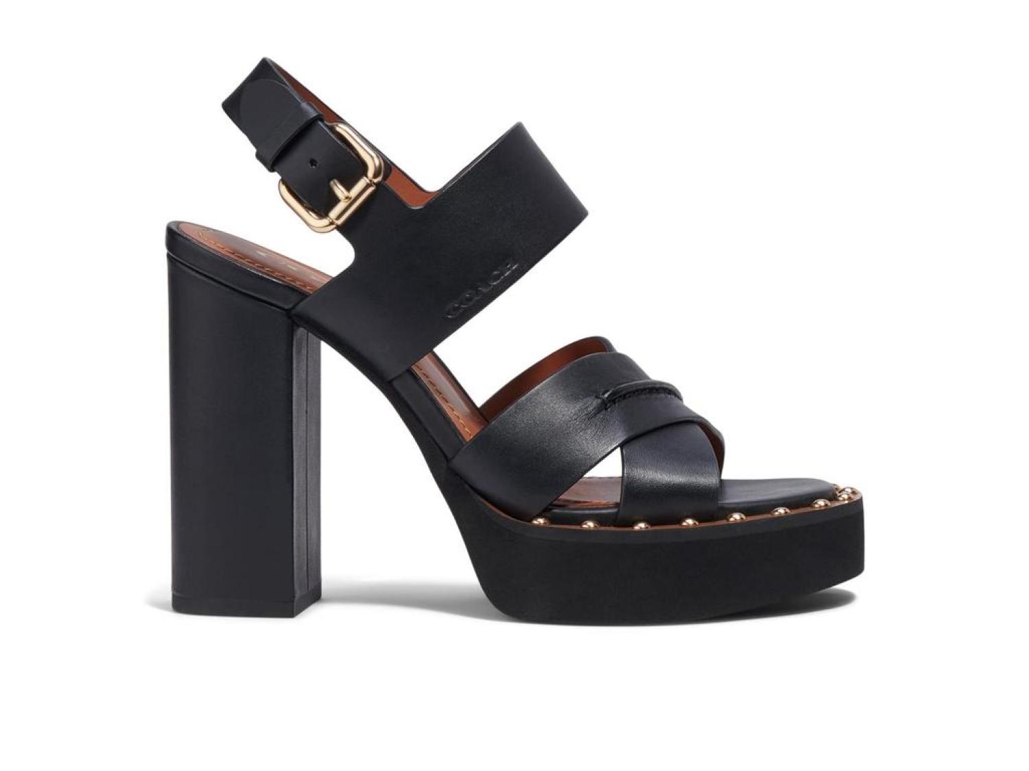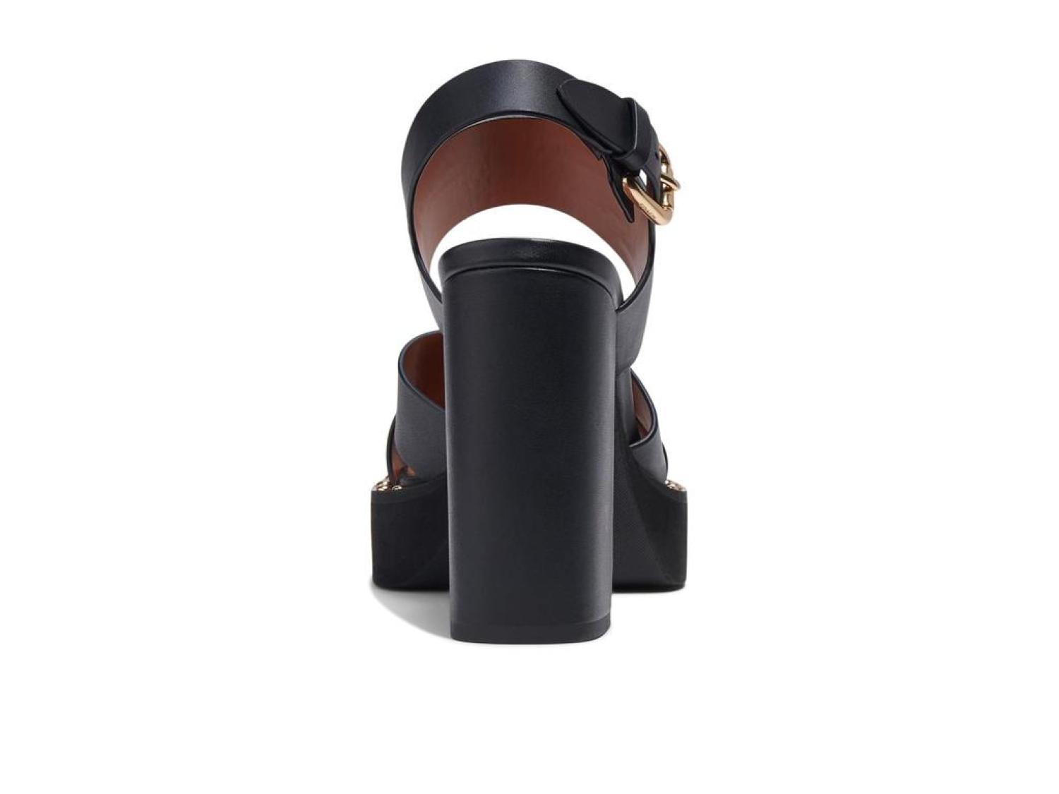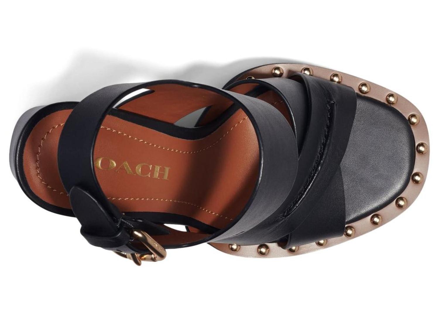 Please Note: COACH™ items cannot be shipped to military addresses (APO or FPO) and addresses in Hawaii, the Virgin Islands, Guam or any other locations outside of the continental US. A perfect choice for your fun night out, the COACH® Callie Leather Sandal will become your absolute favorite. Leather upper. Man-made lining with a cushioned footbed. Slingback strap with adjustable buckle closure. Open square toe silhouette. Crisscross straps on the upper. Polished stud details on the edges. Brand name embossed on the footbed. High block heel. Durable synthetic outsole. Imported. Product measurements were taken using size 8, width B - Medium. Please note that measurements may vary by size. Measurements: Heel Height: 4 1/4 in Weight: 13 oz Platform Height: 1 1/2 in-