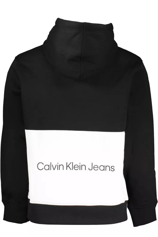 Elevate your casual wardrobe with the sleek and bold Calvin Klein hoodie. Perfectly balancing comfort and style, this long-sleeved, black sweatshirt features a cozy hood and a convenient central pocket for functionality. Sharp contrasting details and the iconic Calvin Klein logo add a touch of sophistication to this eco-conscious piece, made with 50% recycled polyester. Make a statement while staying true to sustainable fashion.