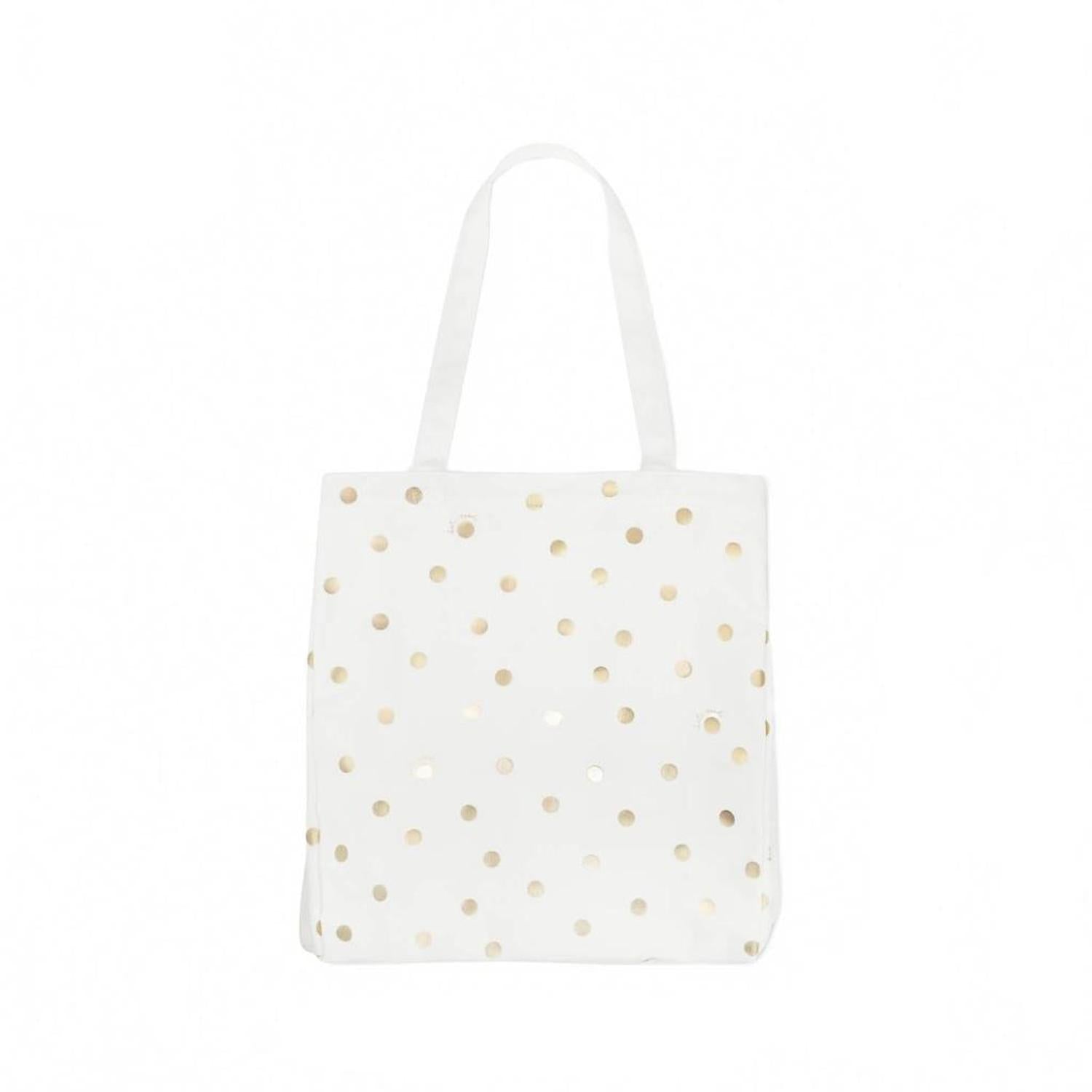 Aside from being the cutest bag ever, this tote is the perfect size to hold all of your vacation necessities. Pair this adorable bag with a flowing dress and some slides and you're all set!Introducing the Canvas Book Tote Bag by Kate Spade, perfect for transporting your favorite reads in style. Adorned with gold dots and script, this tote adds a touch of elegance to any outfit. The spacious design makes it ideal for books, magazines, or everyday essentials. Crafted with attention to detail, it's a chic companion for the book lover on the go.