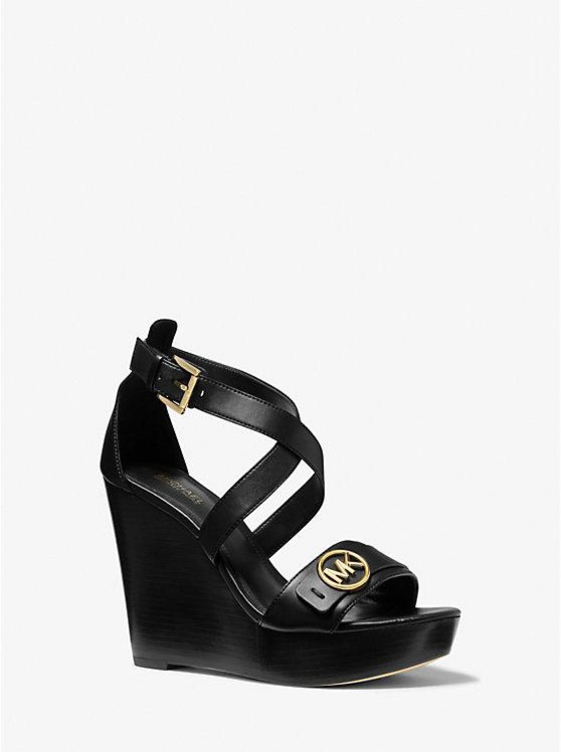 • Our Carmen sandal will take any look to striking new heights. Crossover straps elegantly frame the foot, while a wedge heel and sturdy platform add height without sacrificing comfort. We love how the gilded logo adds a hint of shine to any ensemble.