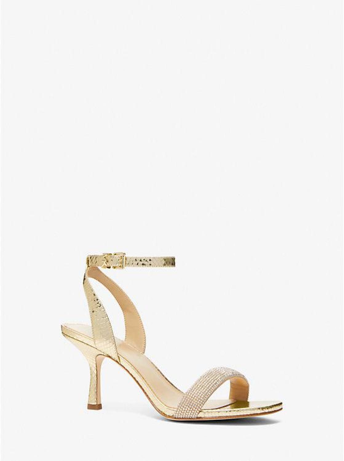 Carrie Embellished Metallic Snake Embossed Leather Sandal
