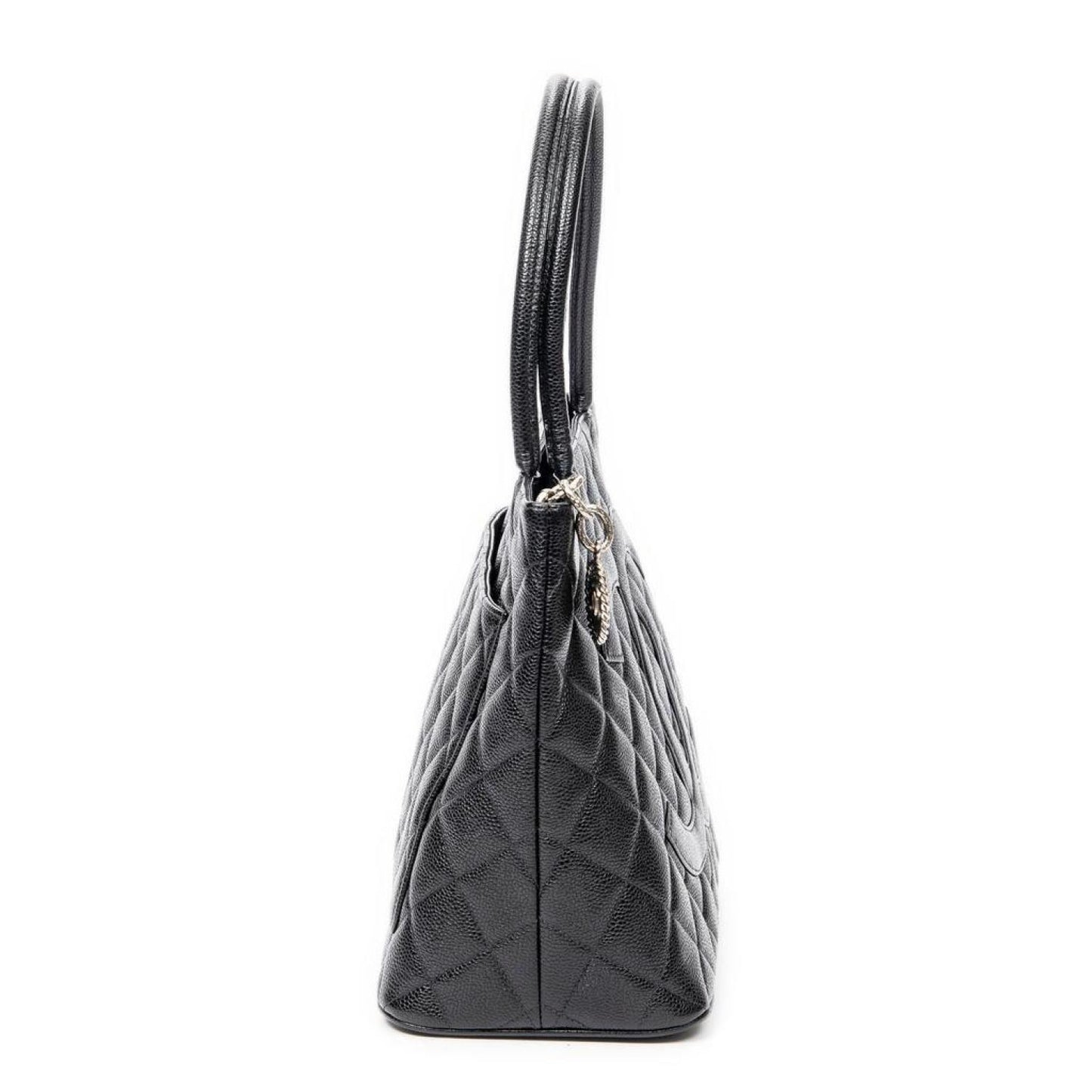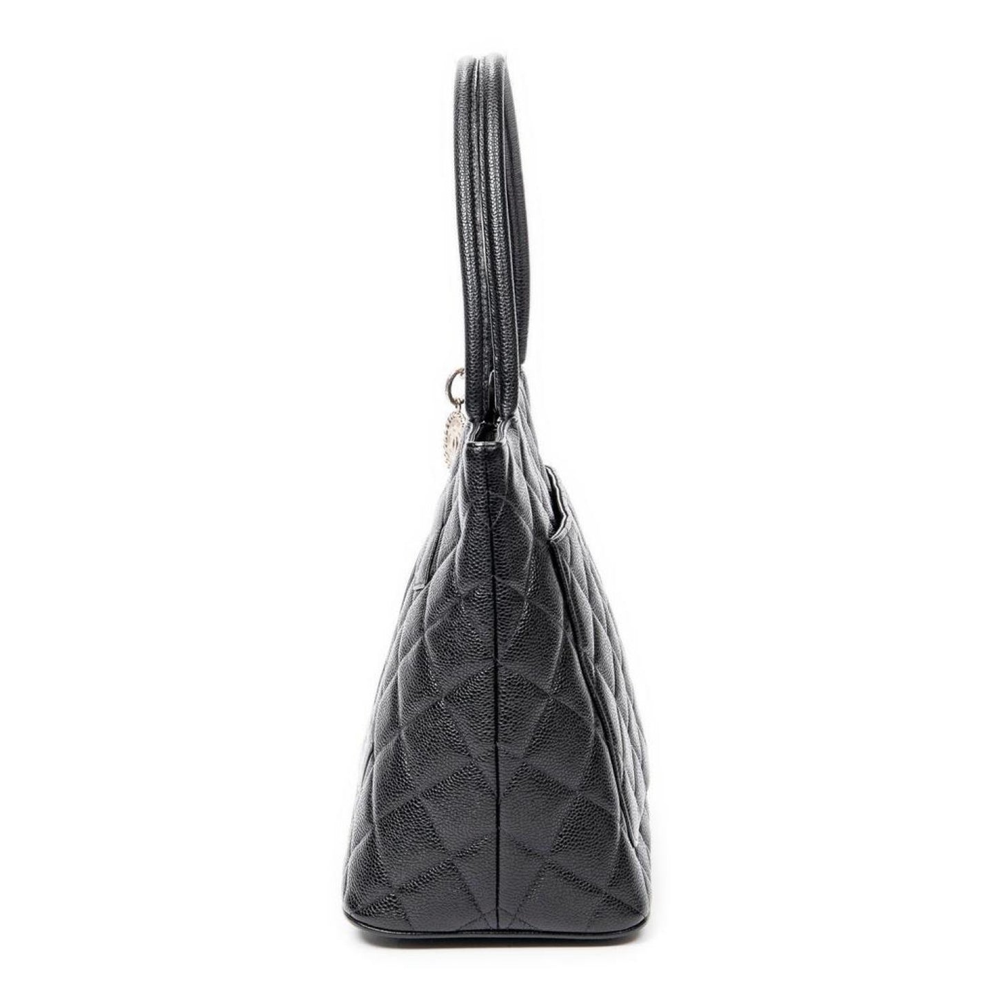 Chanel Shoulder Bag in Black Quilted Caviar Leather and Silver hardware. Dimensions - 30*25*14cm. Serial number - 6077943 (2000-2002). Inclusions - sticker.