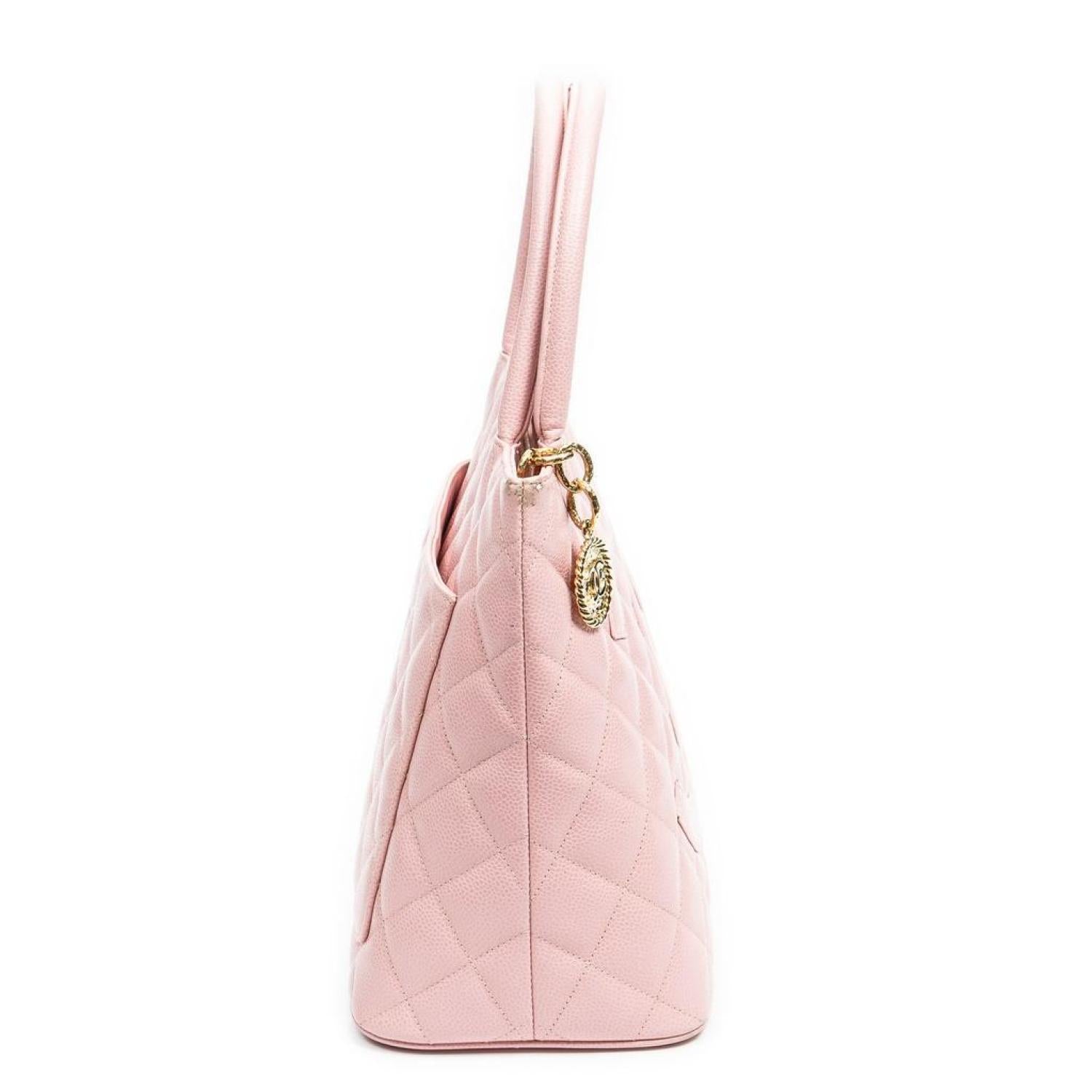 Chanel Shoulder Bag in Pink Quilted Caviar Leather and Gold hardware. Dimensions - 30*24*15cm. Serial number - 8921340 (2003-2004). Inclusions - Sticker.