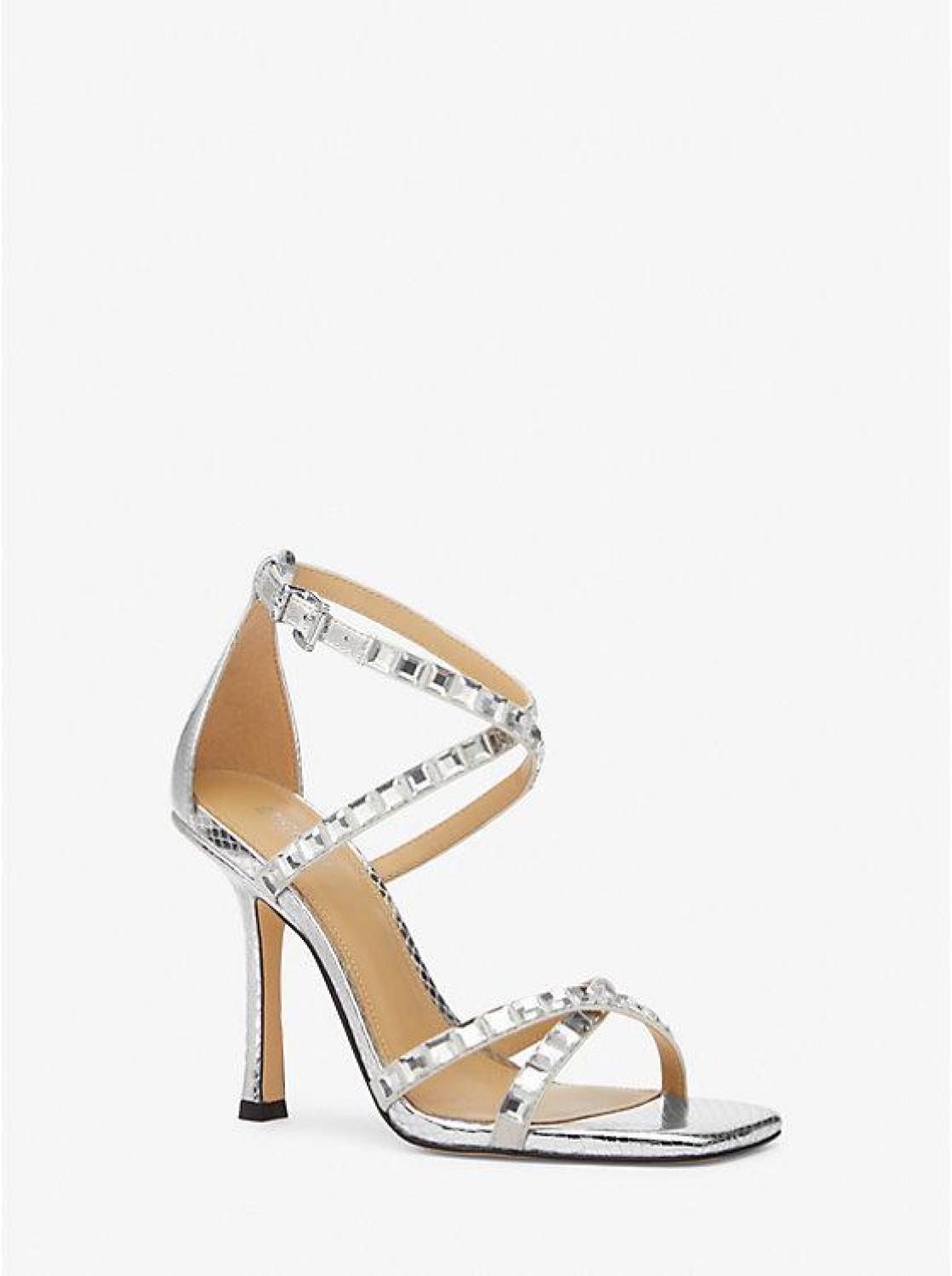 Celia Crystal Embellished Metallic Snake Embossed Sandal