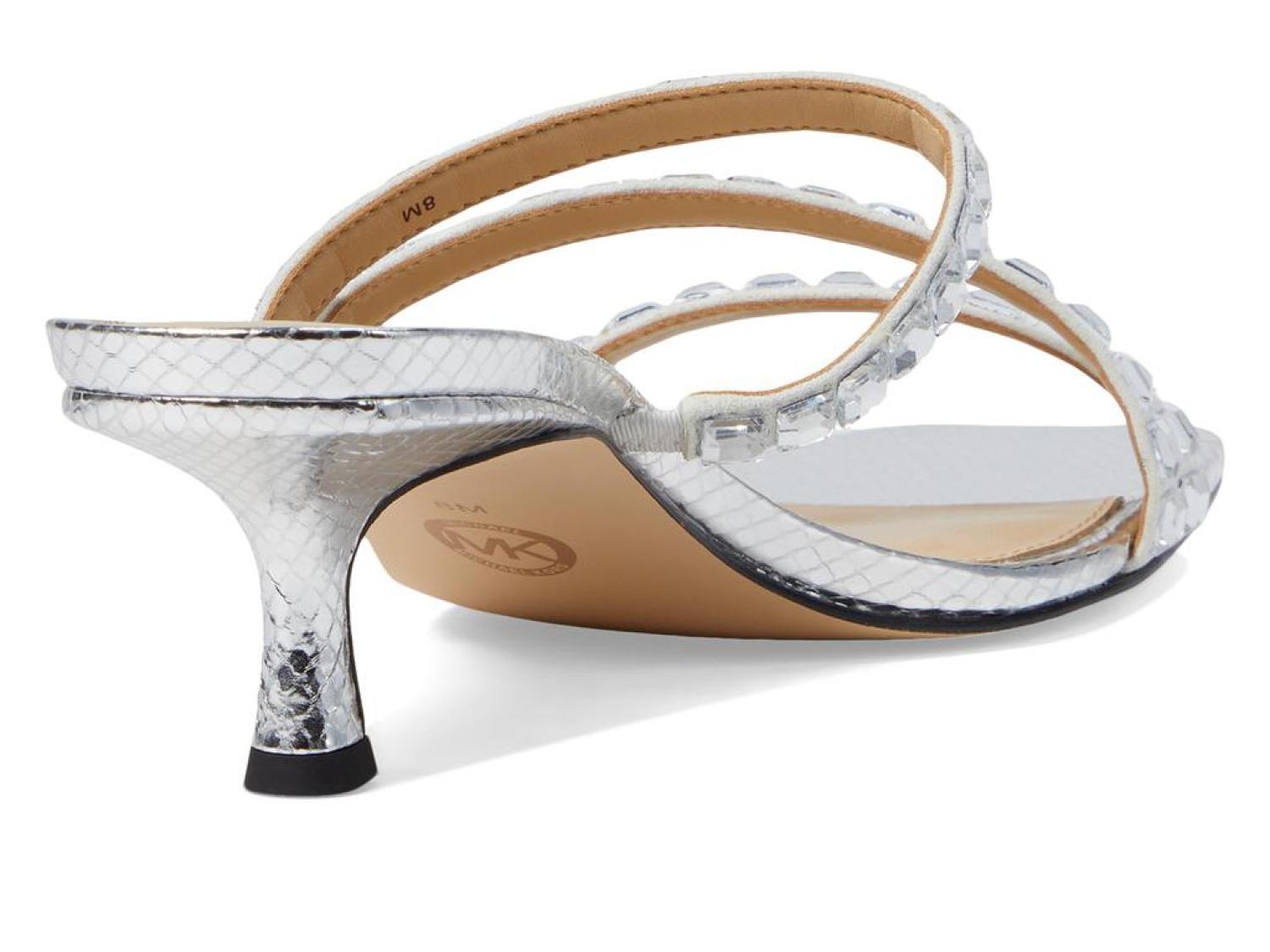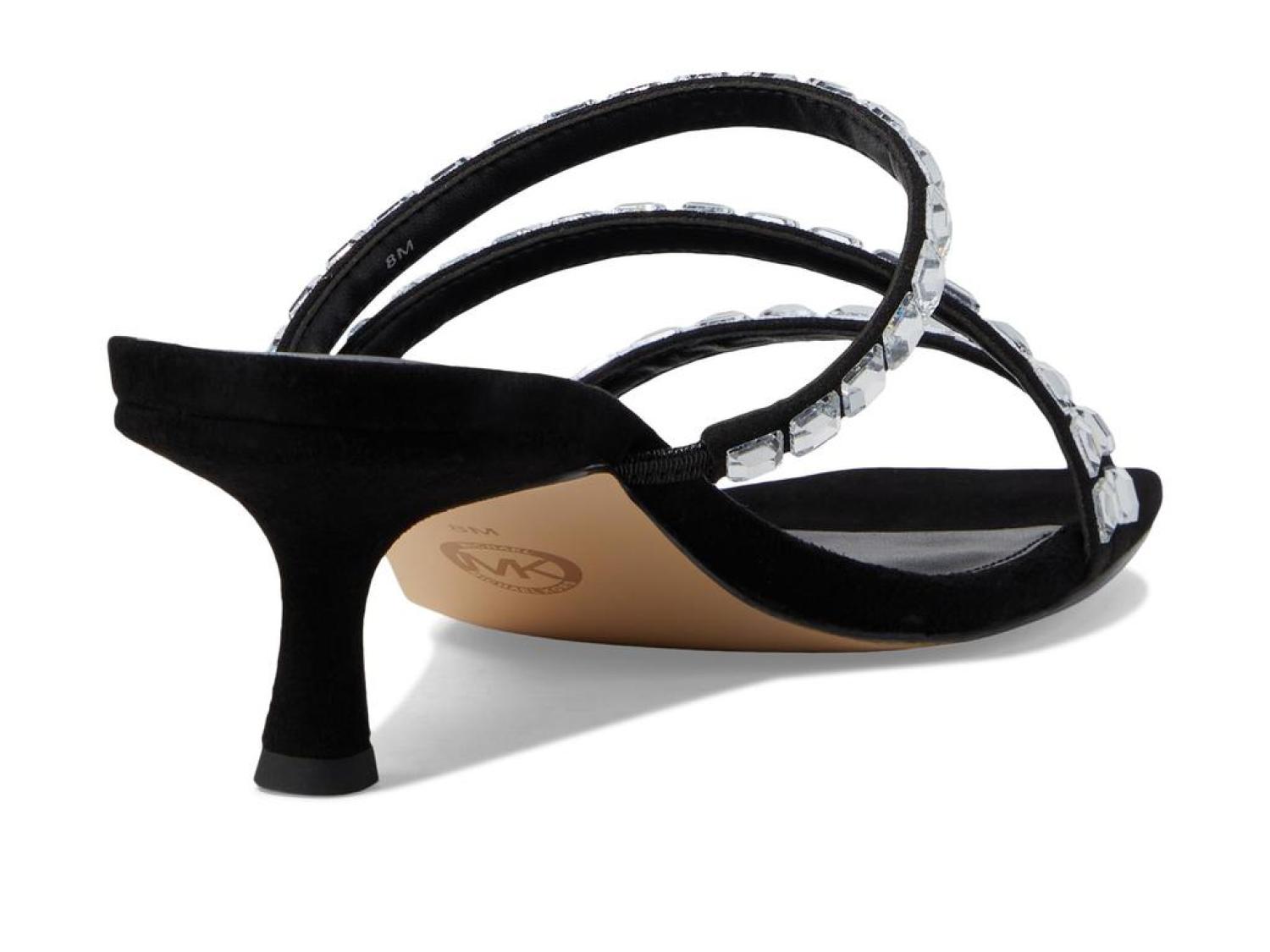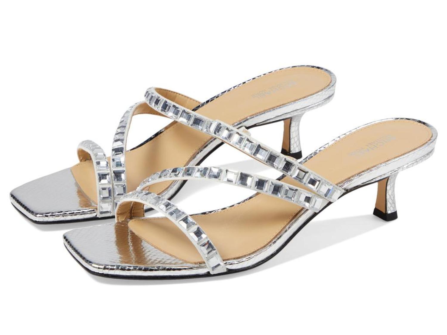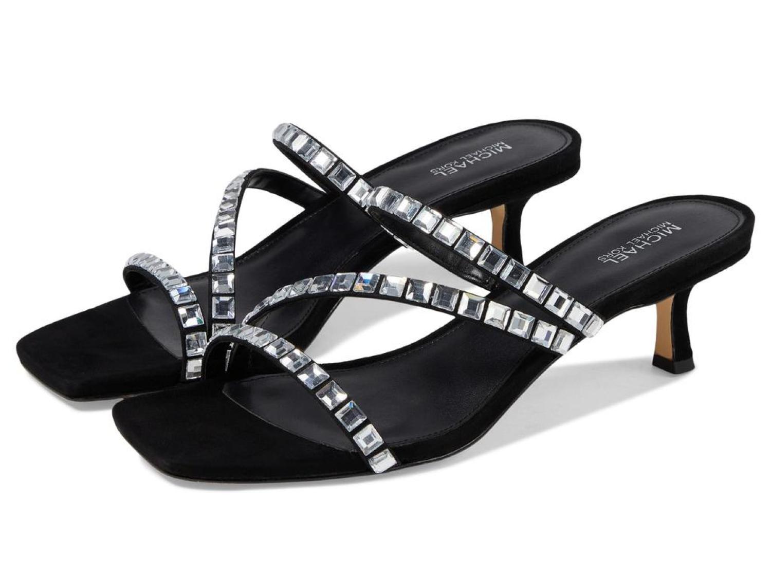 Level up your party look donning the MICHAEL Michael Kors® Celia Kitten Slide. These heels have open square toe design, brand detailing on the footbed, and slip-on construction. The heels have a textile upper and synthetic footbed. Synthetic lining. Kitten heels. Synthetic outsole. Imported. Product measurements were taken using size 8, width M. Please note that measurements may vary by size. Measurements: Heel Height: 2 in Weight: 7 oz-
