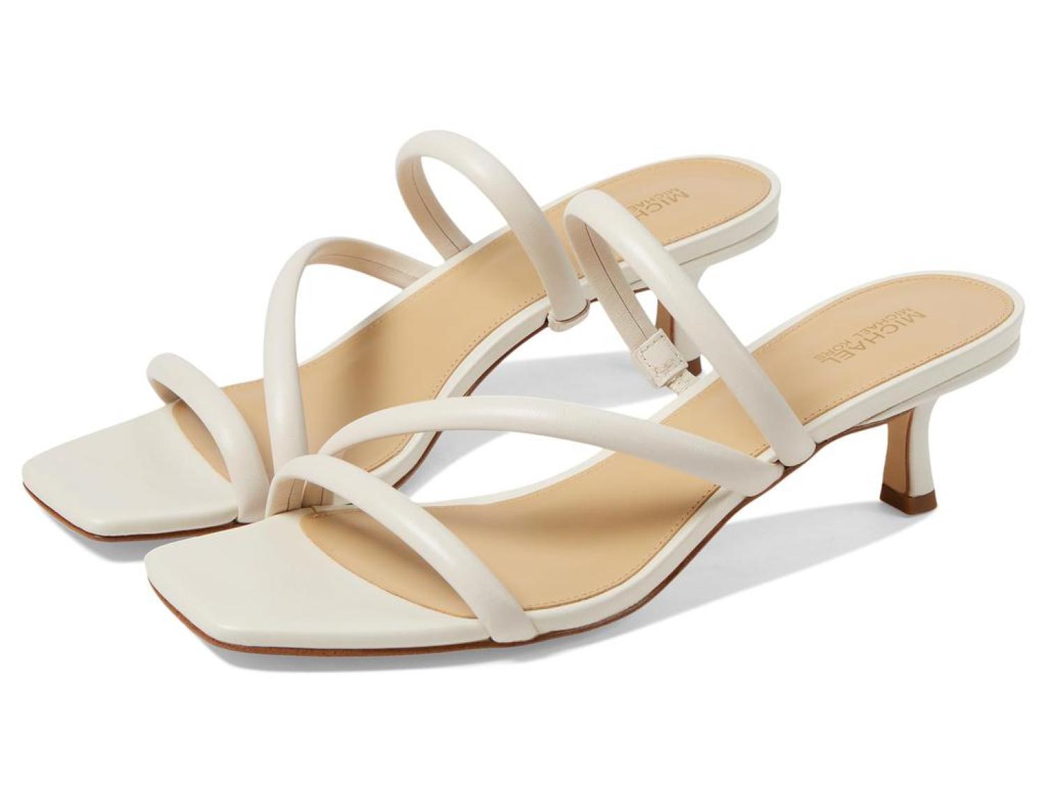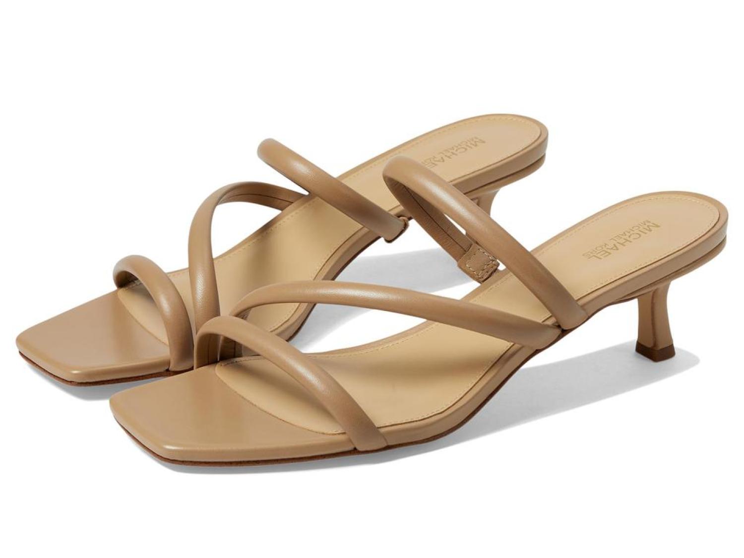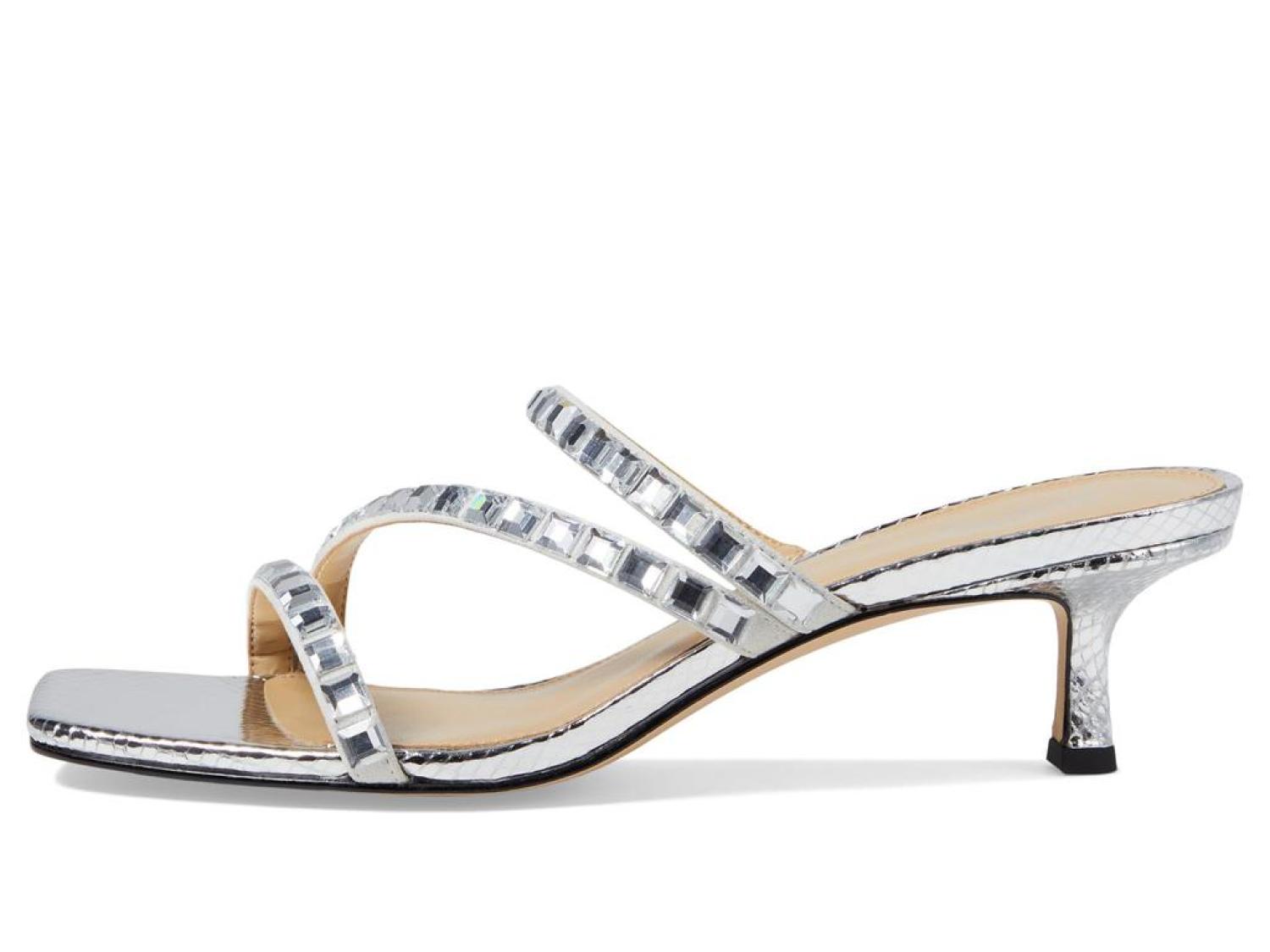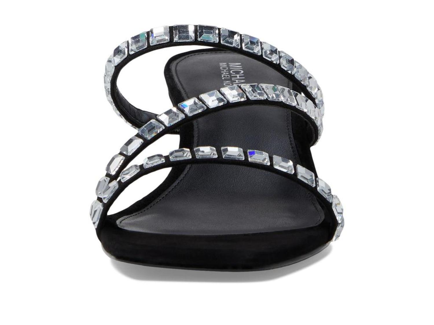 Level up your party look donning the MICHAEL Michael Kors® Celia Kitten Slide. These heels have open square toe design, brand detailing on the footbed, and slip-on construction. The heels have a textile upper and synthetic footbed. Synthetic lining. Kitten heels. Synthetic outsole. Imported. Product measurements were taken using size 8, width M. Please note that measurements may vary by size. Measurements: Heel Height: 2 in Weight: 7 oz-