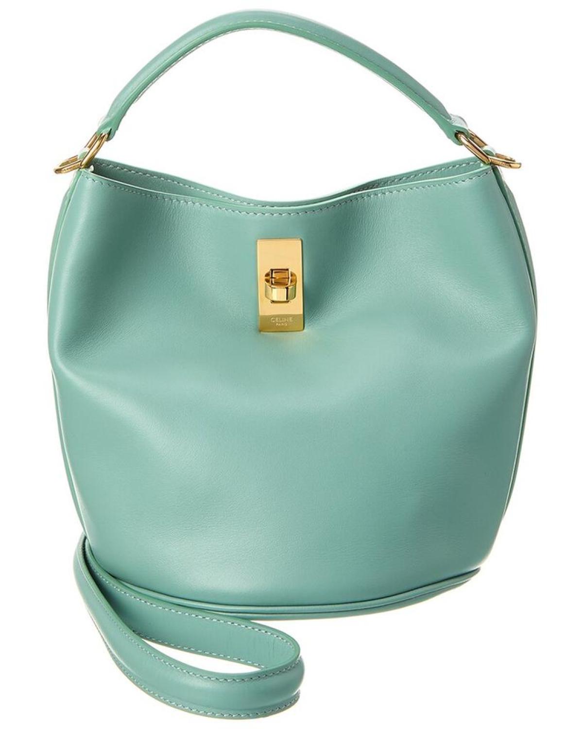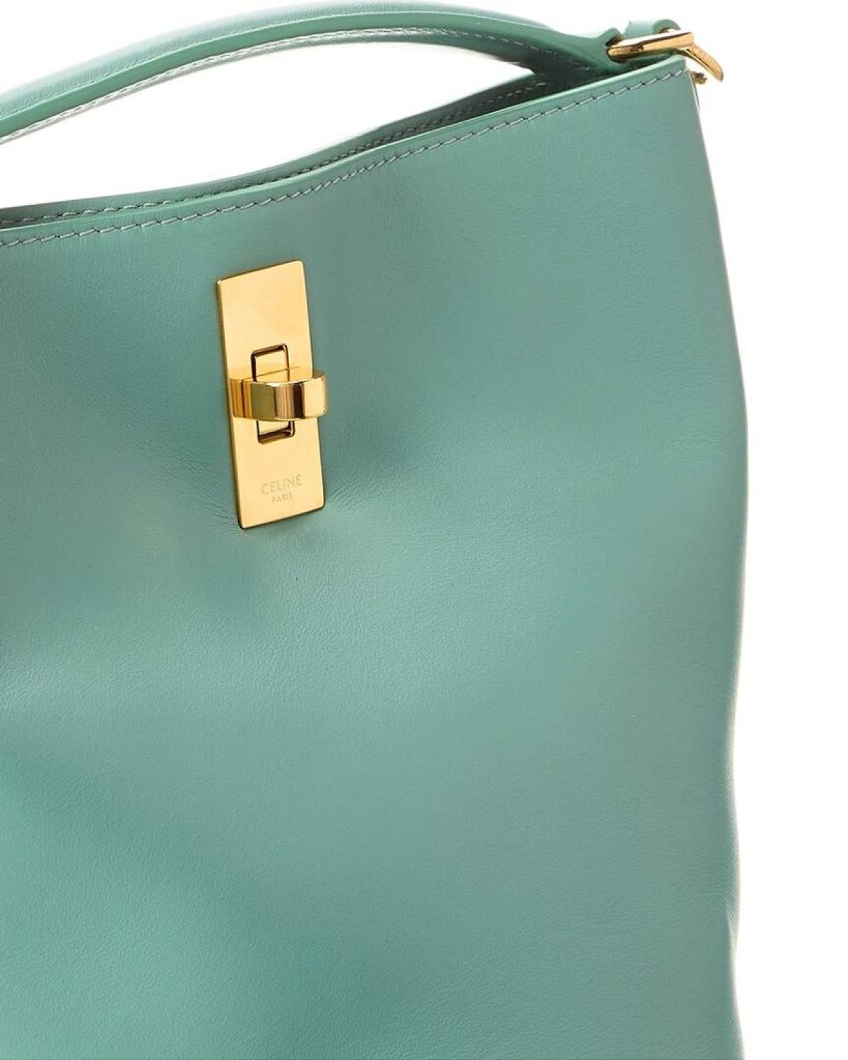 Introducing the CELINE Teen 16 Leather Bucket Bag, a must-have addition to any fashion-forward woman's collection. This exquisite handbag embodies the timeless and coveted Parisian chic aesthetic that the brand is known for.Crafted with meticulous attention to detail in Italy, this teal leather bucket bag showcases the impeccable quality that CELINE is renowned for. Adorned with gold-tone hardware, it exudes an understated elegance and sophistication.The interior of the bag is lined with luxurious suede, providing a sleek and sumptuous backdrop to your belongings. Measuring approximately 6 inches wide, 7 inches high, and 6 inches deep, it offers ample space without compromising on style.Featuring a top handle with a 4-inch drop, this bag offers versatility in how it can be carried. Additionally, it comes with an adjustable and removable shoulder strap, allowing you to customize the way you wear it with a 19-inch drop.The turnlock closure ensures the security of your essentials while adding a touch of timeless charm. Please note that all measurements were taken by hand, and slight variations may occur as a result.Rest assured, our products are 100% genuine. While in some cases we may source merchandise from trusted independent suppliers, we stand by the authenticity of every product sold on our site. When you purchase the CELINE Teen 16 Leather Bucket Bag, you can be confident that you are investing in an authentic piece from this iconic brand.Indulge in the elegance of the CELINE brand and elevate your style with this exquisite Teen 16 Leather Bucket Bag. Discover the perfect blend of classic and contemporary design with this Parisian treasure. Shop now and experience the timeless allure that only CELINE can offer.