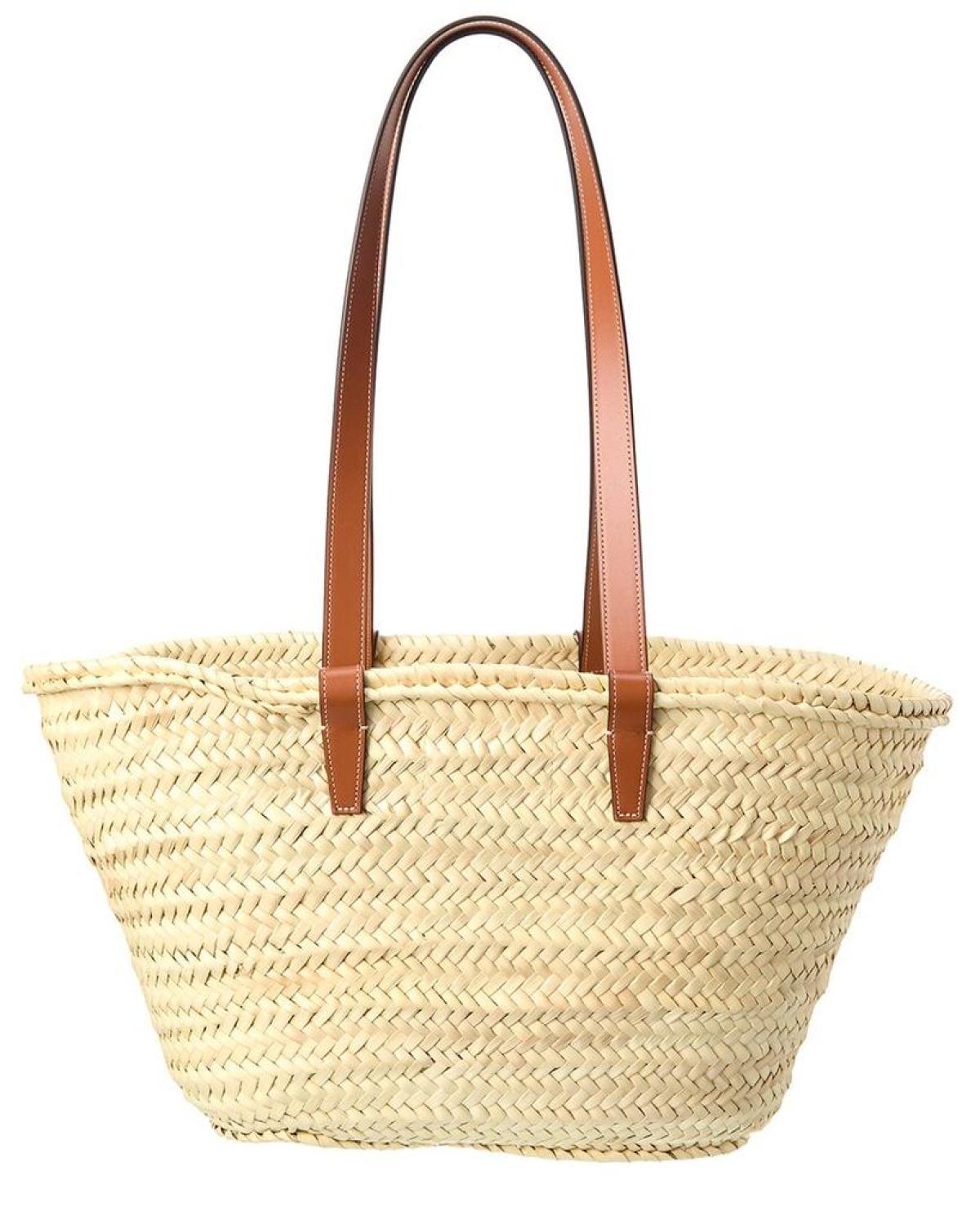 Introducing the CELINE Triomphe Palm Leaves & Leather Tote, a perfect combination of classic Parisian chic and exquisite craftsmanship. Made in Italy, this elegant handbag from the renowned brand CELINE exudes sophistication and style.Crafted from high-quality tan palm leaves and calfskin, this tote bag features gold-tone hardware with a studded logo patch, making it a stunning accessory that will elevate any ensemble. The unlined interior design adds a touch of minimalism, while the spacious dimensions of 10 inches wide, 10 inches high, and 6 inches deep offer ample room for all your essentials.The CELINE Triomphe Palm Leaves & Leather Tote is designed with top handles that provide a comfortable drop of 13 inches, allowing you to wear it with ease. Please note that all measurements were taken by hand and are approximate; slight variations may occur.Rest assured, our products are 100% genuine. While in some cases we acquire merchandise from trusted independent suppliers, we always guarantee the authenticity of every product we sell on our site. Trust in the quality and integrity of CELINE and indulge in this must-have accessory that embodies the brand's timeless elegance.