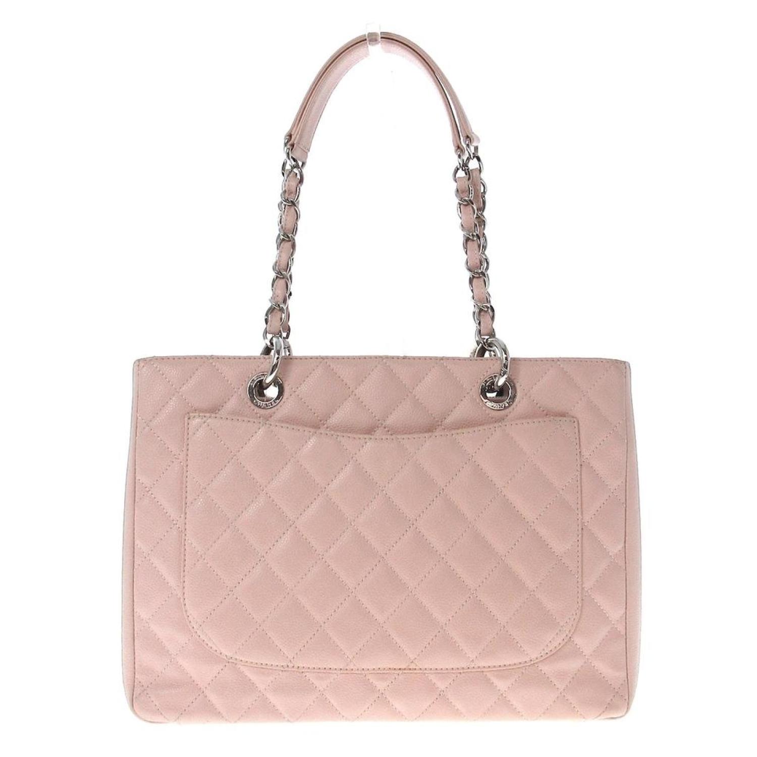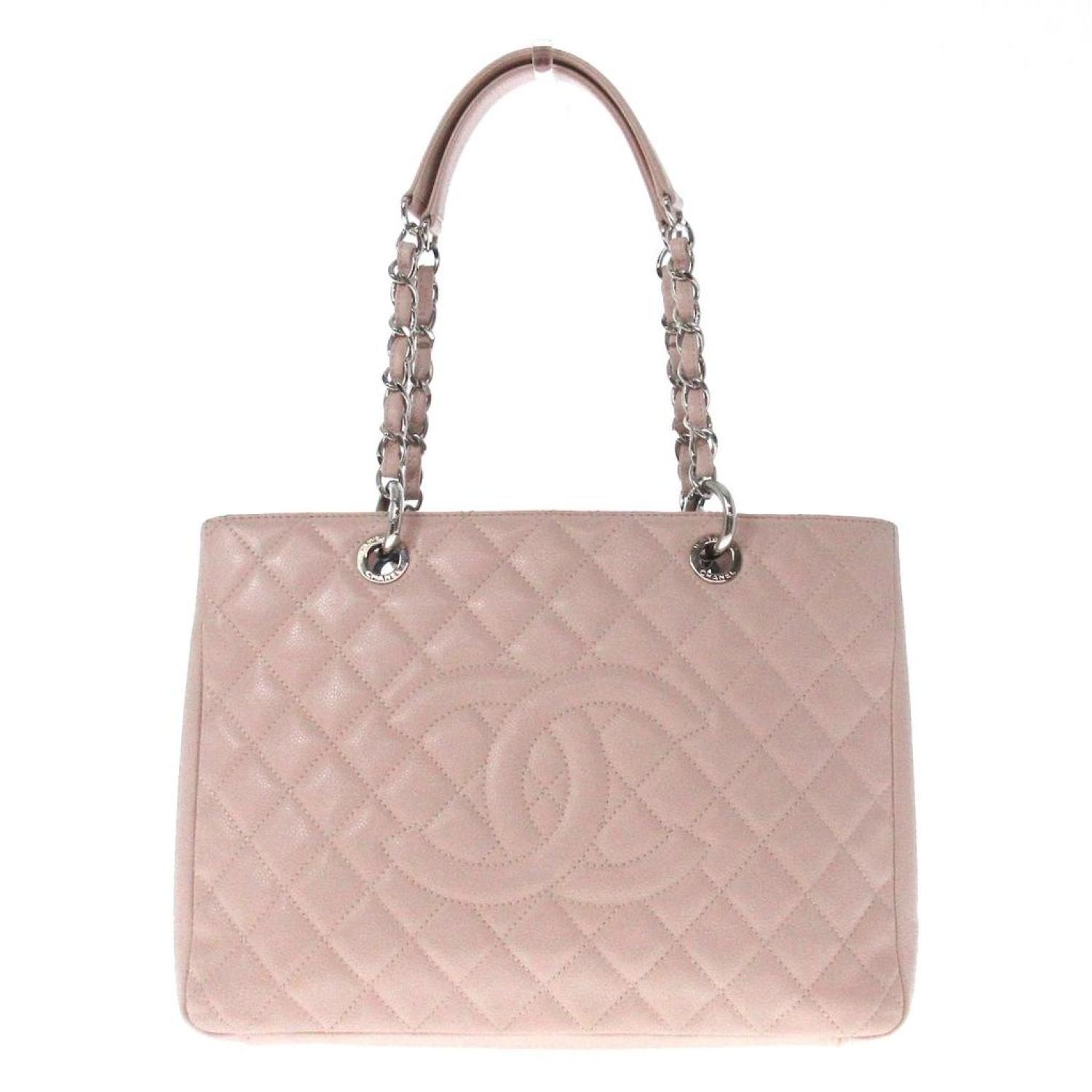 Brand - ChanelModel - GST (Grand shopping Tote)Color - PinkMaterial - LeatherInclusions - /Dimensions - height - ~ 24 cm width - ~ 33 cm depth - ~ 12.5 cm handle - to the main body ~ 22.5 cm (measuring in the state at the time of shooting)Serial number - SealCountry of origin - ItalyCondition - AB - good condition.Introducing the Chanel GST Shopping Tote (GST), a luxurious and stylish tote bag designed for the modern woman.Examining the exterior, the caviar skin material in a charming pink hue adds an elegant touch. Overall, the bag is lightly soiled, with some small stains on the bottom and dullness in the metal parts. There's also some dust in the inside corner of the pocket, contributing to its vintage appeal. The bag is slightly misshapen, enhancing its relaxed and casual look. The bottom shows minimal wear on the corners, while the handle exhibits some scuffs. The main opening is slightly scuffed at the corners.Turning to the interior, the overall cleanliness is lightly soiled, with many small white stains and some dust in the corners. The pockets show some small stains, and there is evidence of metal plating peeling off in certain areas. We recommend that you look at all the pictures before making your purchase to ensure that you are satisfied with the condition of the item.
