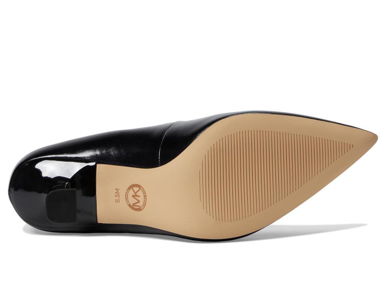 • Look refined and stay relaxed as you walk through the streets or enter the party wearing the MICHAEL Michael Kors® Clara Mid Pumps. Boasting a sleek and simple silhouette with a pointy toe and a wrapped heel, the shoes are constructed with a leather upper, lining, and insole. They feature a slip-on style and can be worn on and off with ease.