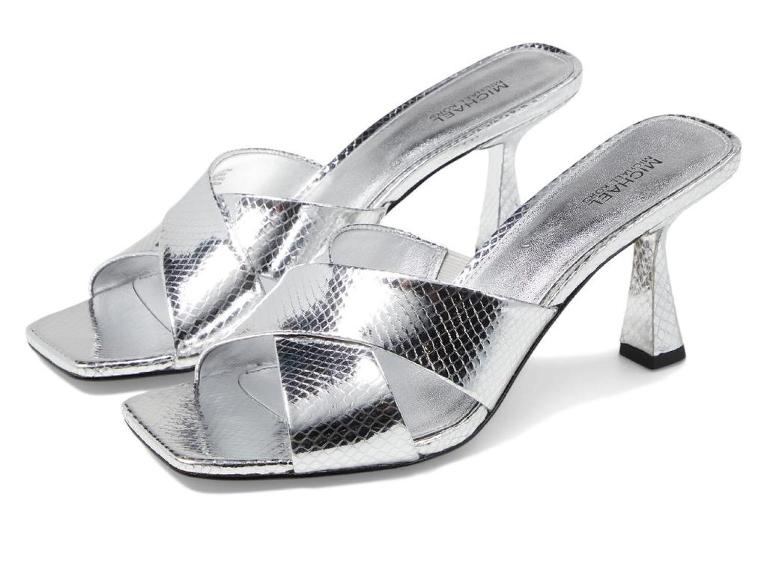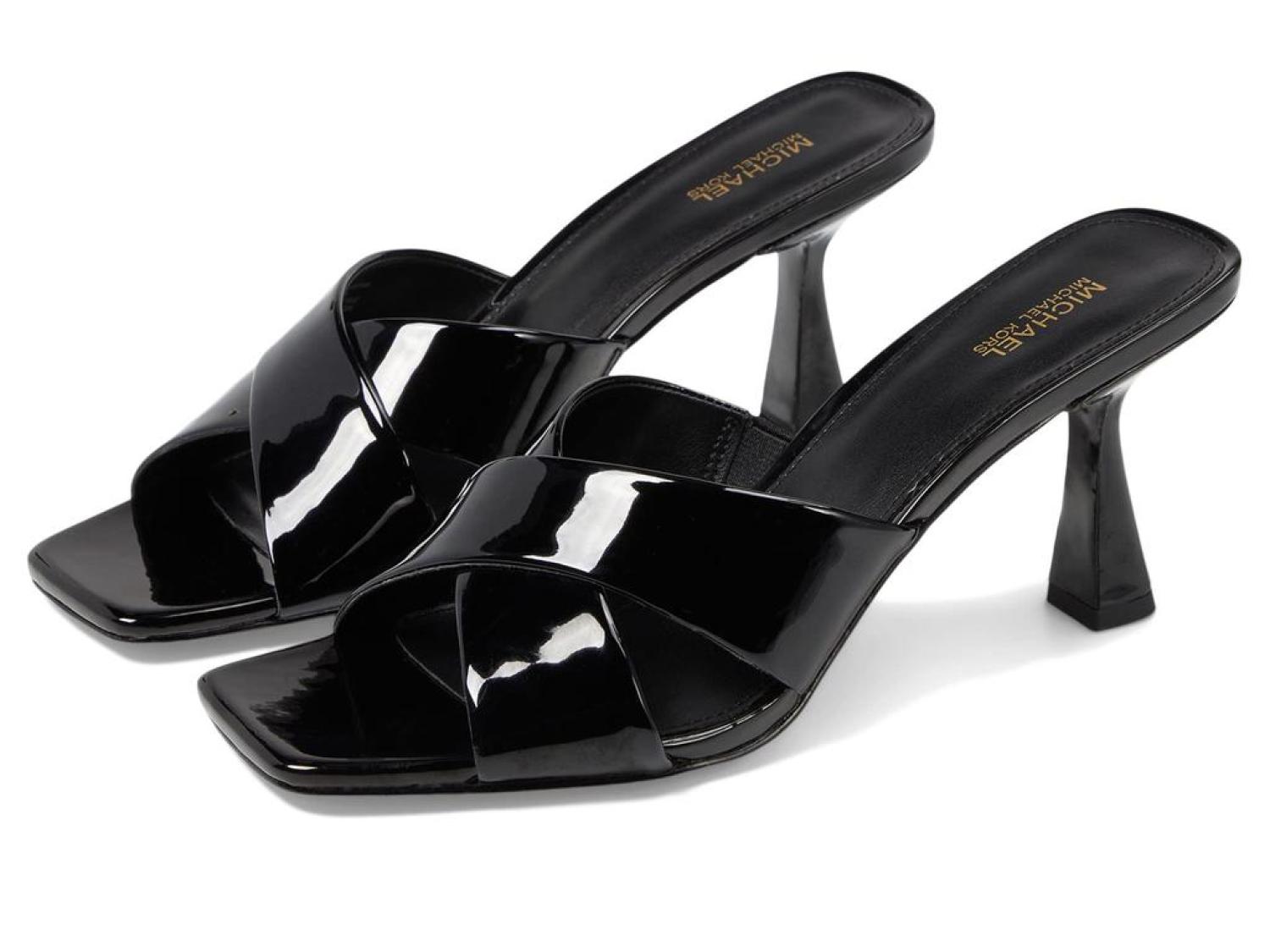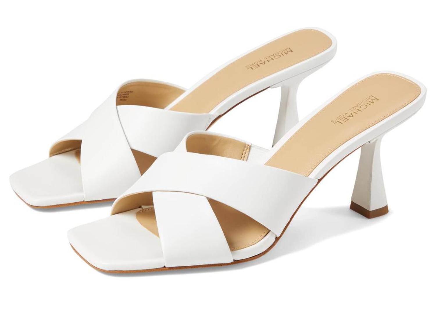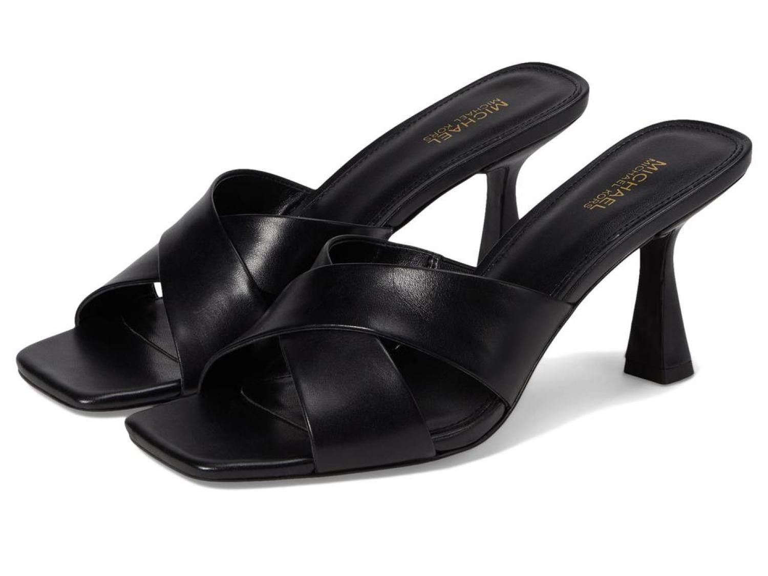 Enhancing your look with a posh appearance, the MICHAEL Michael Kors® Clara Mule Heels showcases a criss-cross strappy design.