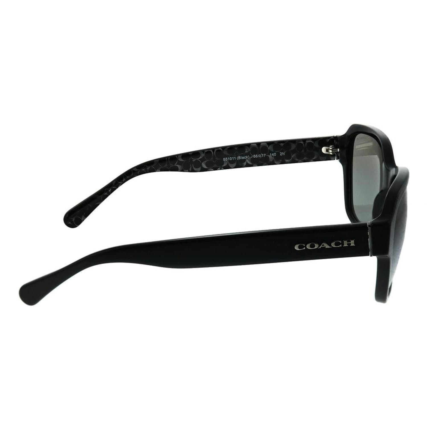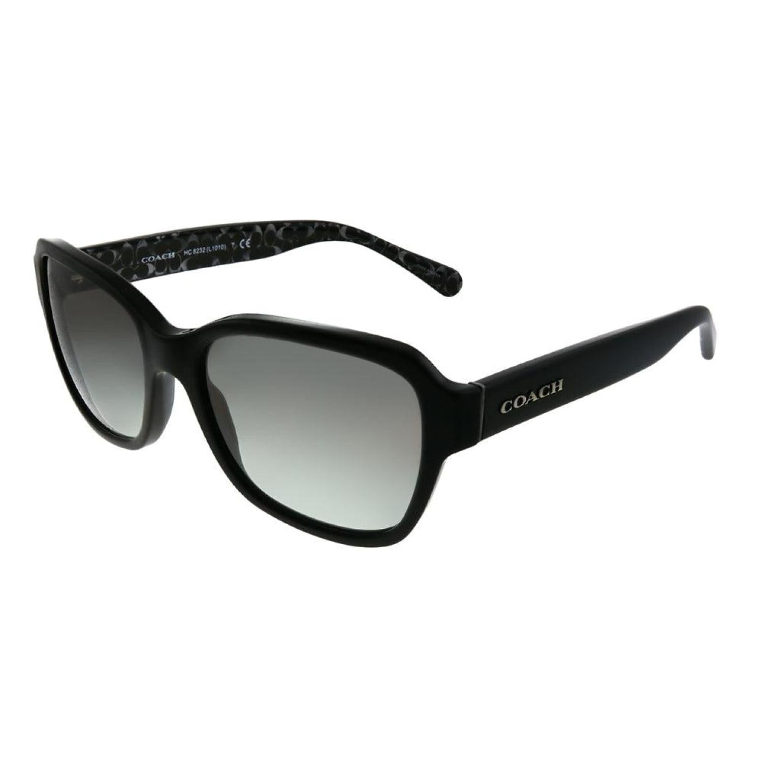 Coach L1010 HC 8232 551011 Womens Black Dark Grey Gradient Lens SunglassesFrame Color - BlackFrame Style - RectangleFrame Material - PlasticLens Color - Dark Grey Gradient LensProtection - UV ProtectedIncludes - Coach case, cloth and paperwork *may vary from pictureSize - Lens 56 mm x bridge 17 mm x arms 140 mm All measurements may vary