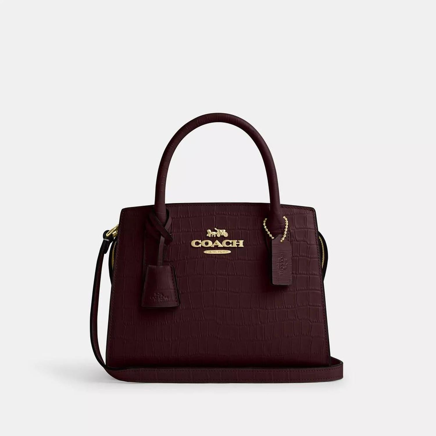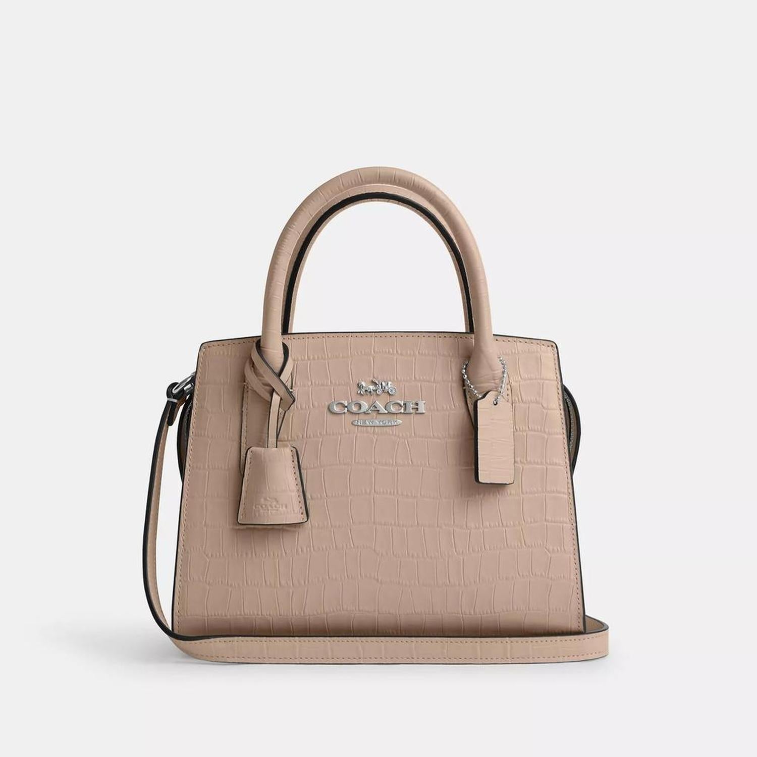Crocodile-embossed leather and smooth leather Inside multifunction pocket Zip closure fabric lining Handles with 3 1/4 drop Detachable strap with 21 3/4 drop for shoulder or crossbody wear Four protective feet at base 8 3/4 (L) x 6 1/2 (H) x 4 1/2 (W) Style No. CR105 | Coach Outlet Andrea Carryall Bag - Beige