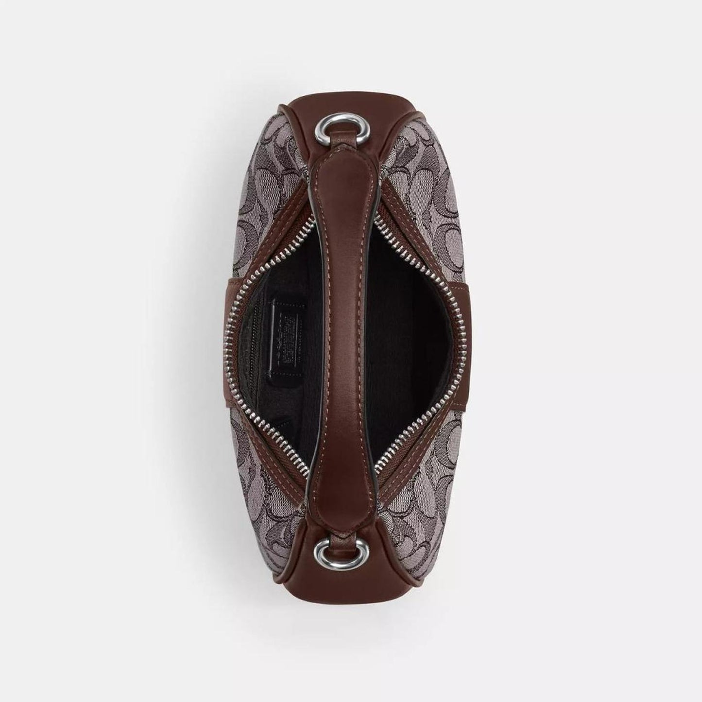 Signature jacquard and smooth leather Inside zip pocket Zip-top closure fabric lining Handles with 5 drop Detachable strap with 23 1/2 drop for shoulder or crossbody wear 7 3/4 (L) x 4 (H) x 2 1/2 (W) Exclusive of trim this Coach piece is crafted of our Signature jacquard made from a blend of organic cotton and recycled polyester Style No. CU984 | Coach Outlet Carmen Mini Crossbody In Signature Jacquard - Brown