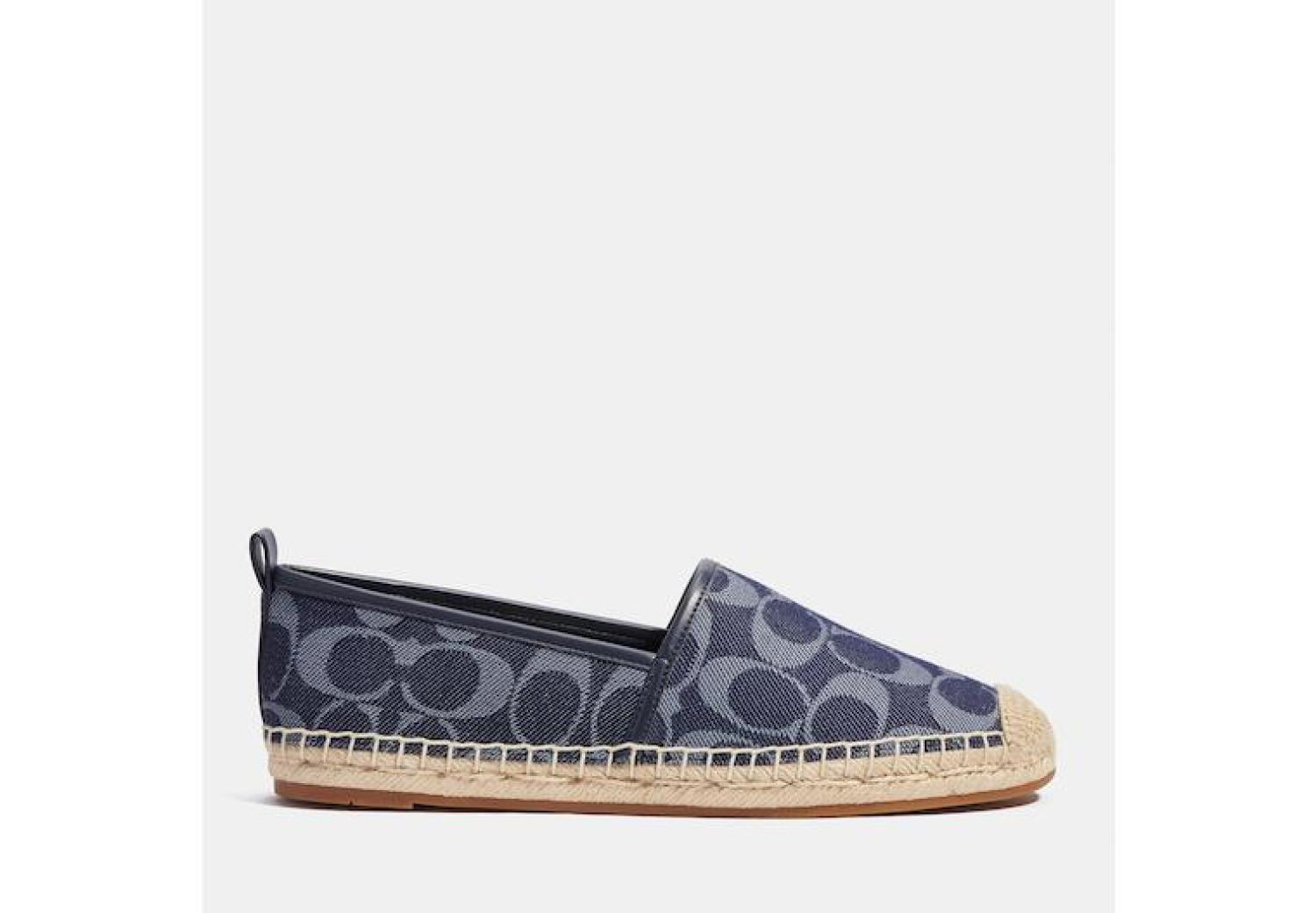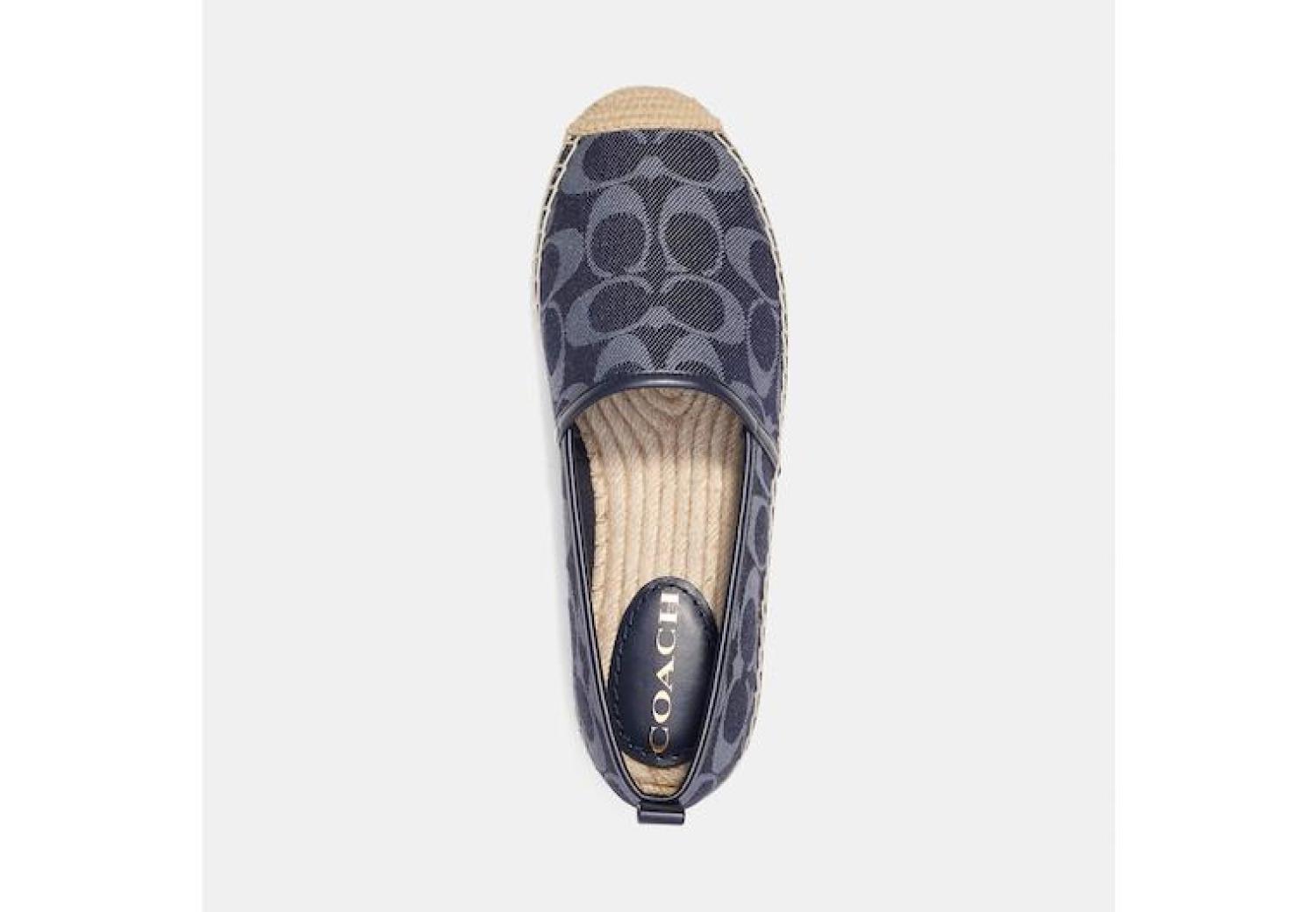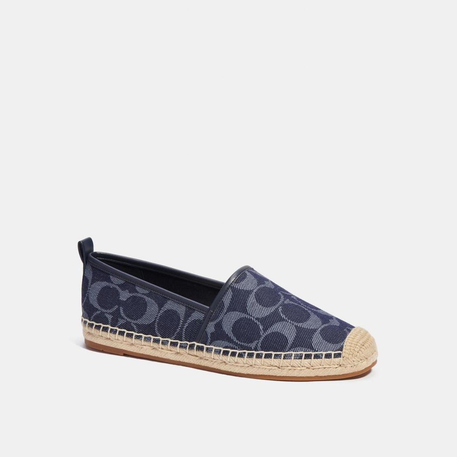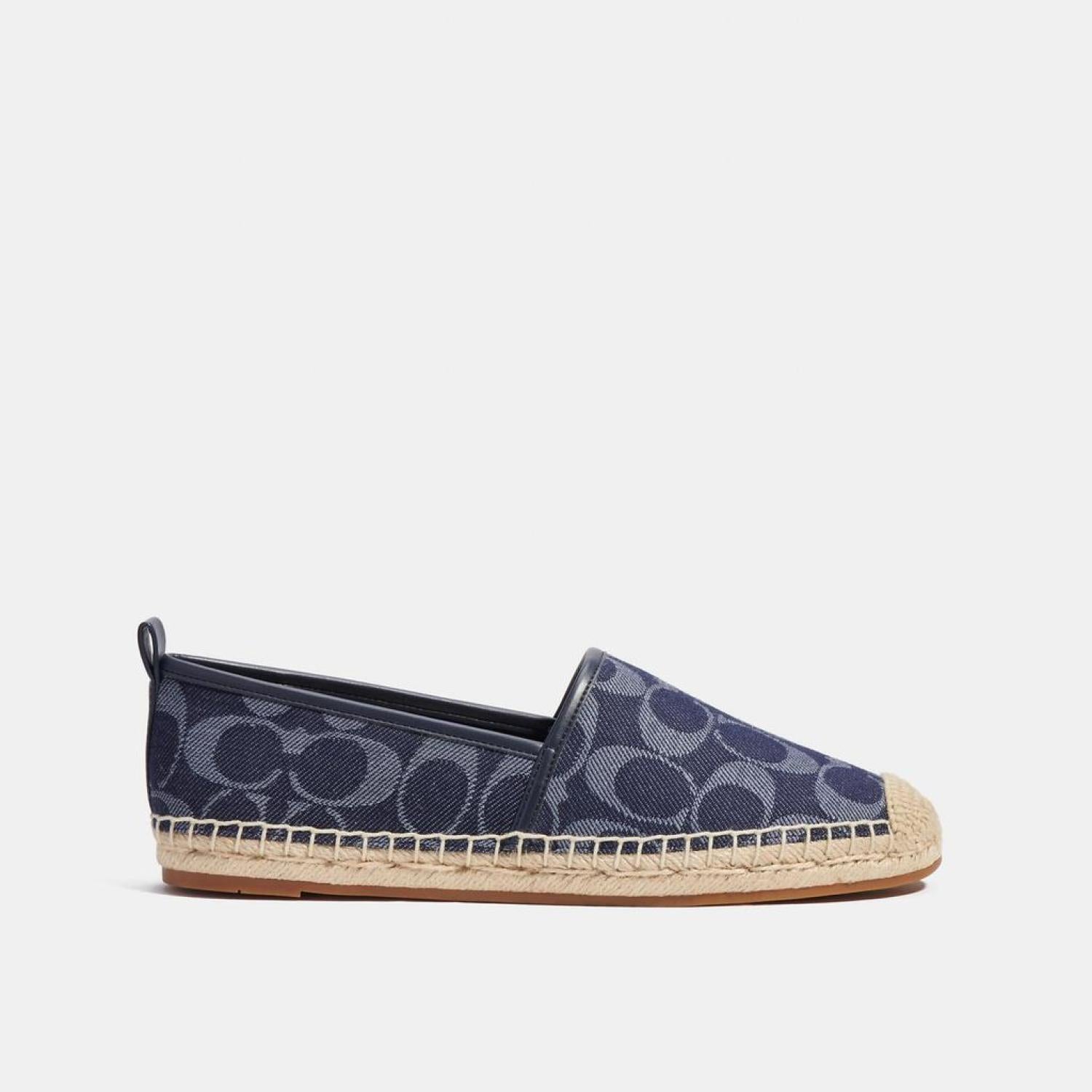 Signature denim and man-made leather upper Fabric lining jute footbed Rubber outsole Slip on 1/2 platform Style No. CG630 | Coach Outlet Codi Espadrille In Signature Denim - Blue, Size - 9