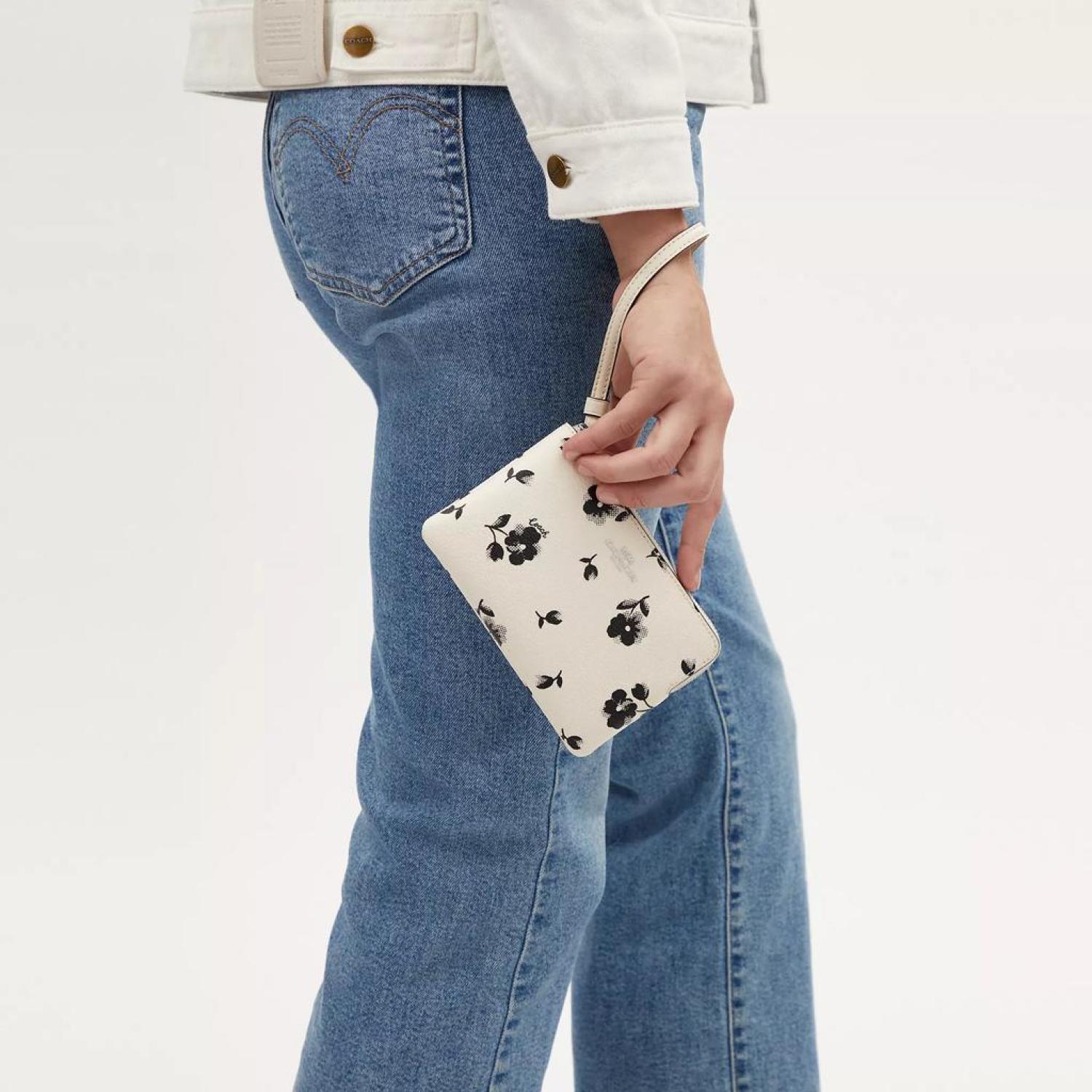Coach Outlet Corner Zip Wristlet With Floral Print