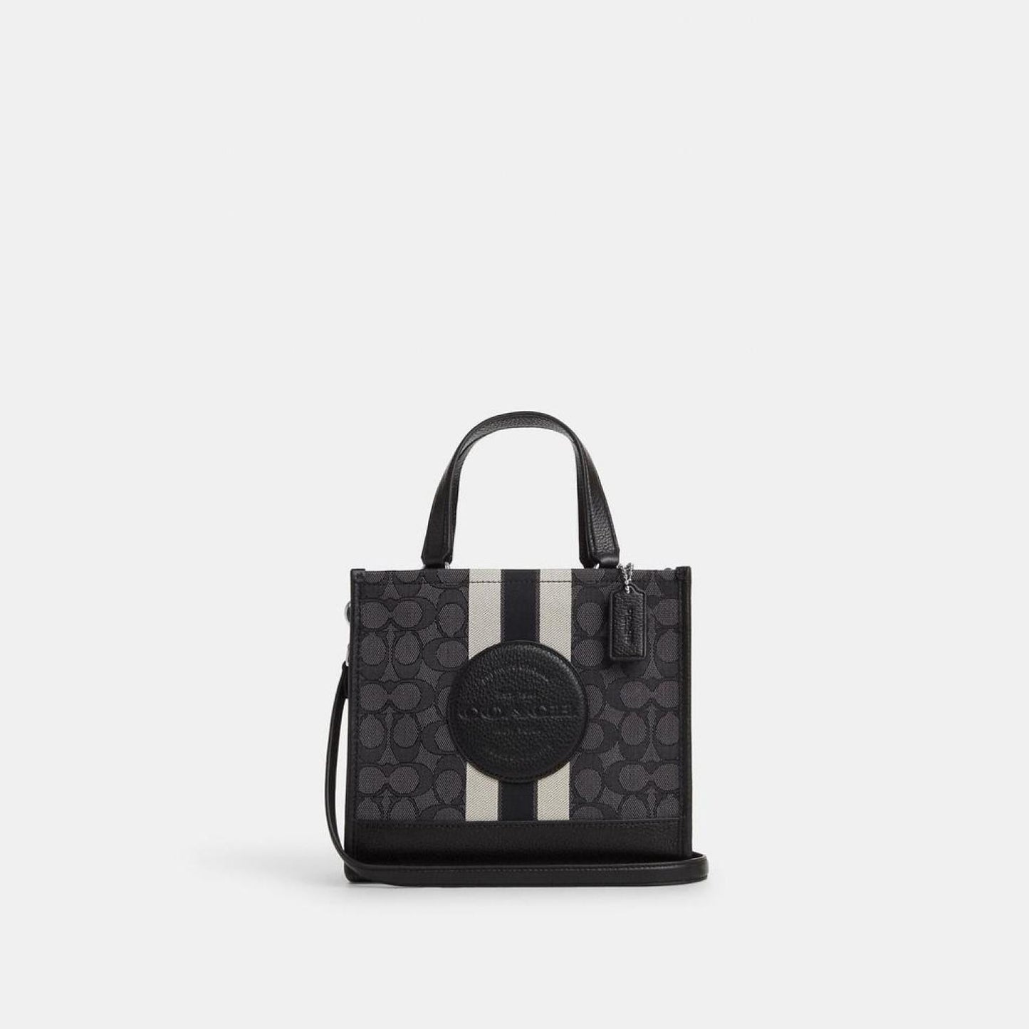 Coach Outlet Dempsey Tote 22 In Signature Jacquard With Stripe And Coach Patch