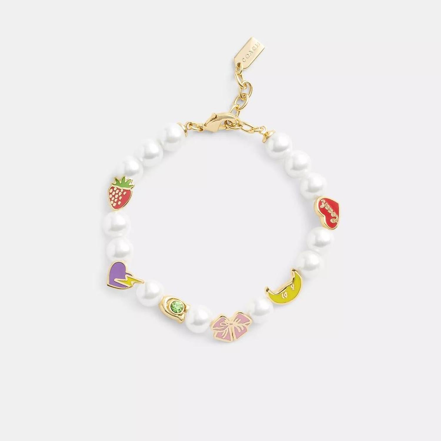 Cubic zirconia plated brass enamel and glass Lobster clasp closure Adjustable 6 1/2–7 1/2 (L) Style No. CY057 | Coach Outlet Heart And Moon Pearl Bracelet - Yellow