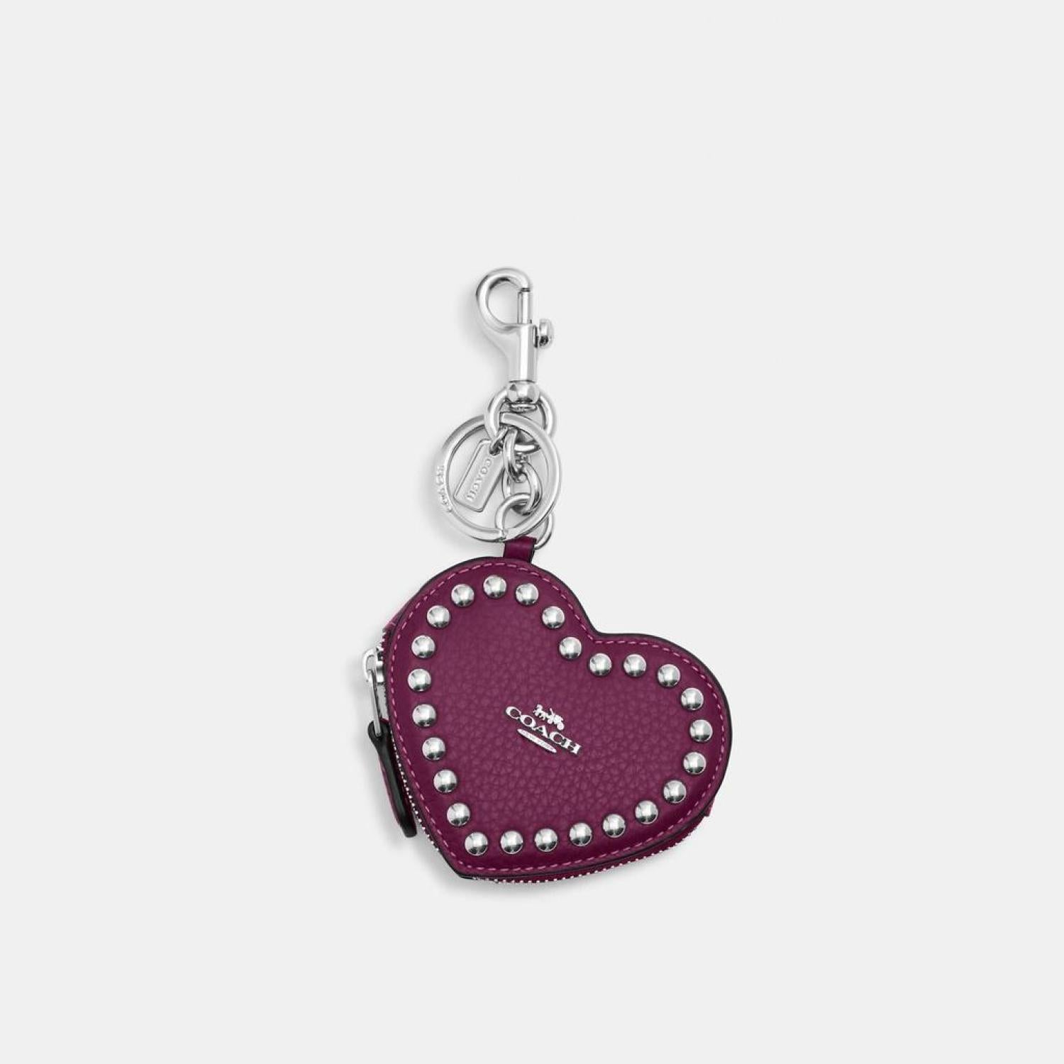Refined pebble leather Zip closure fabric lining Attached split key ring and dogleash clip 3 1/2 (L) x 3 (H) x 5 (W) Style No. CM311 | Coach Outlet Heart Pouch With Rivets - Pink