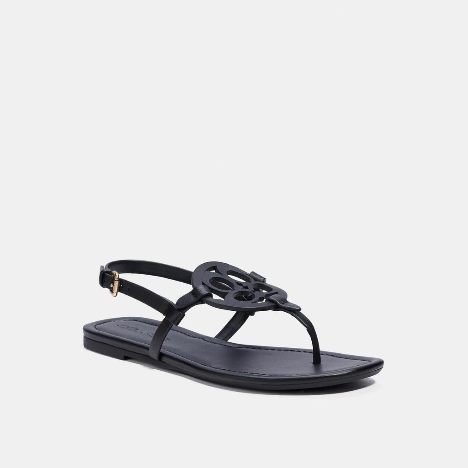 • Leather upper Man-made leather lining and footbed Rubber outsole Buckle closure Style No. C2924 | Coach Outlet Jaci Sandal - Black, Size - 7.5