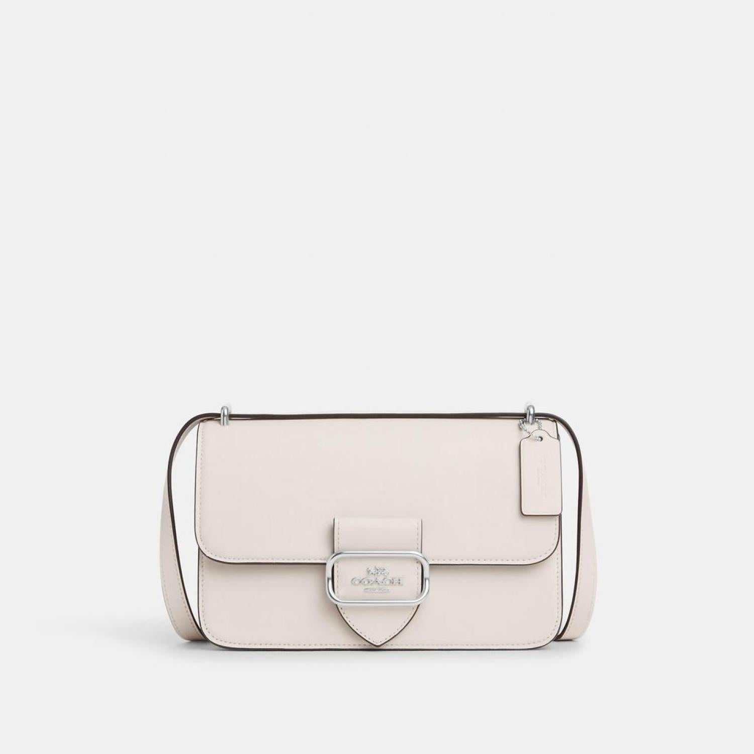 • Refined calf leather Inside zip and multifunction pockets Snap closure fabric lining Adjustable strap with 21 1/2 drop for shoulder or crossbody wear Outside open pocket 9 3/4 (L) x 6 1/4 (H) x 3 (W) Style No. CM090 | Coach Outlet Large Morgan Square Crossbody - Black