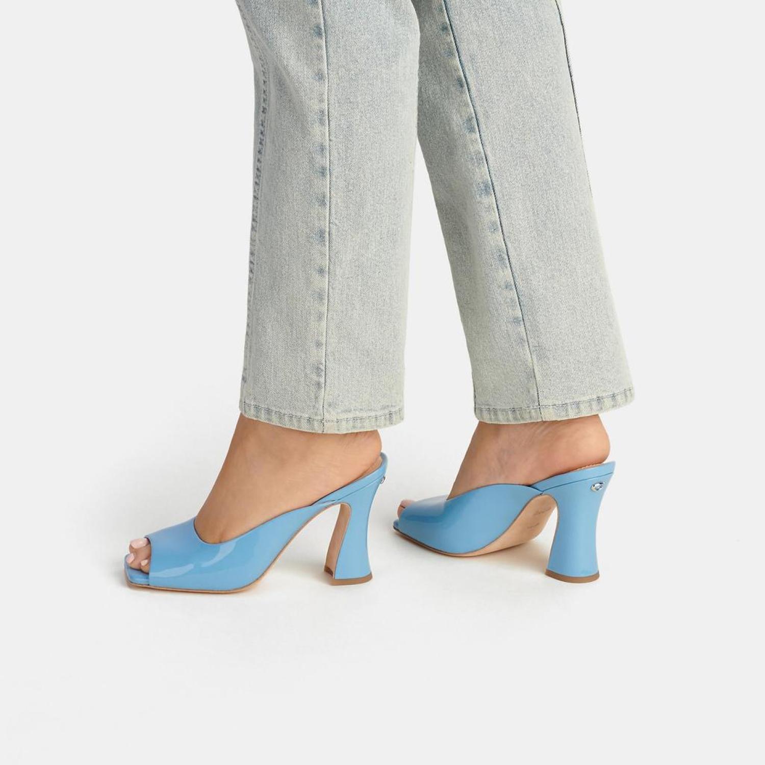 Patent leather upper Leather lining and footbed Leather outsole Slip on 3 1/2 heel Style No. CI230 | Coach Outlet Laurence Sandal - Blue, Size - 6