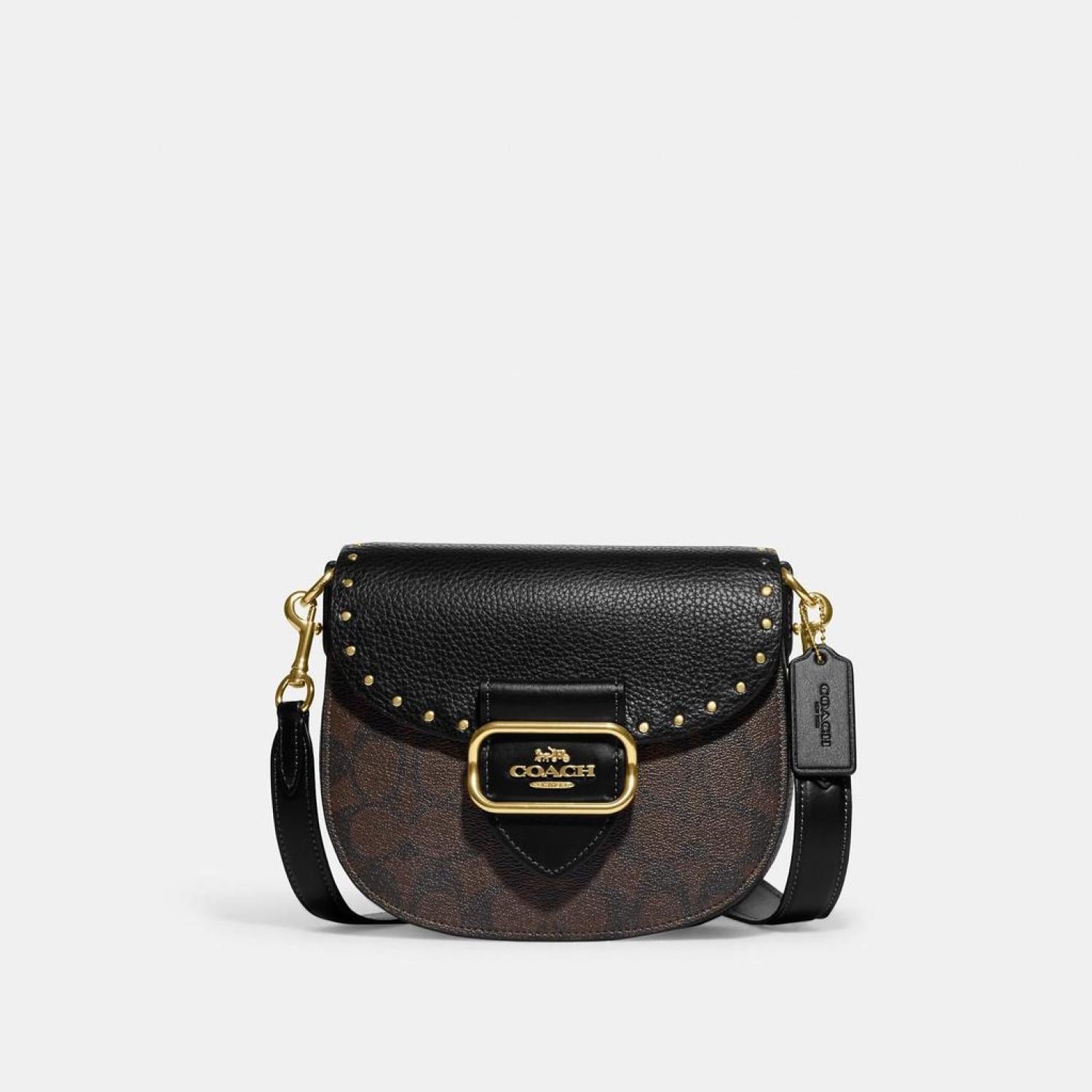 Coach Outlet Morgan Saddle Bag In Colorblock Signature Canvas With Rivets