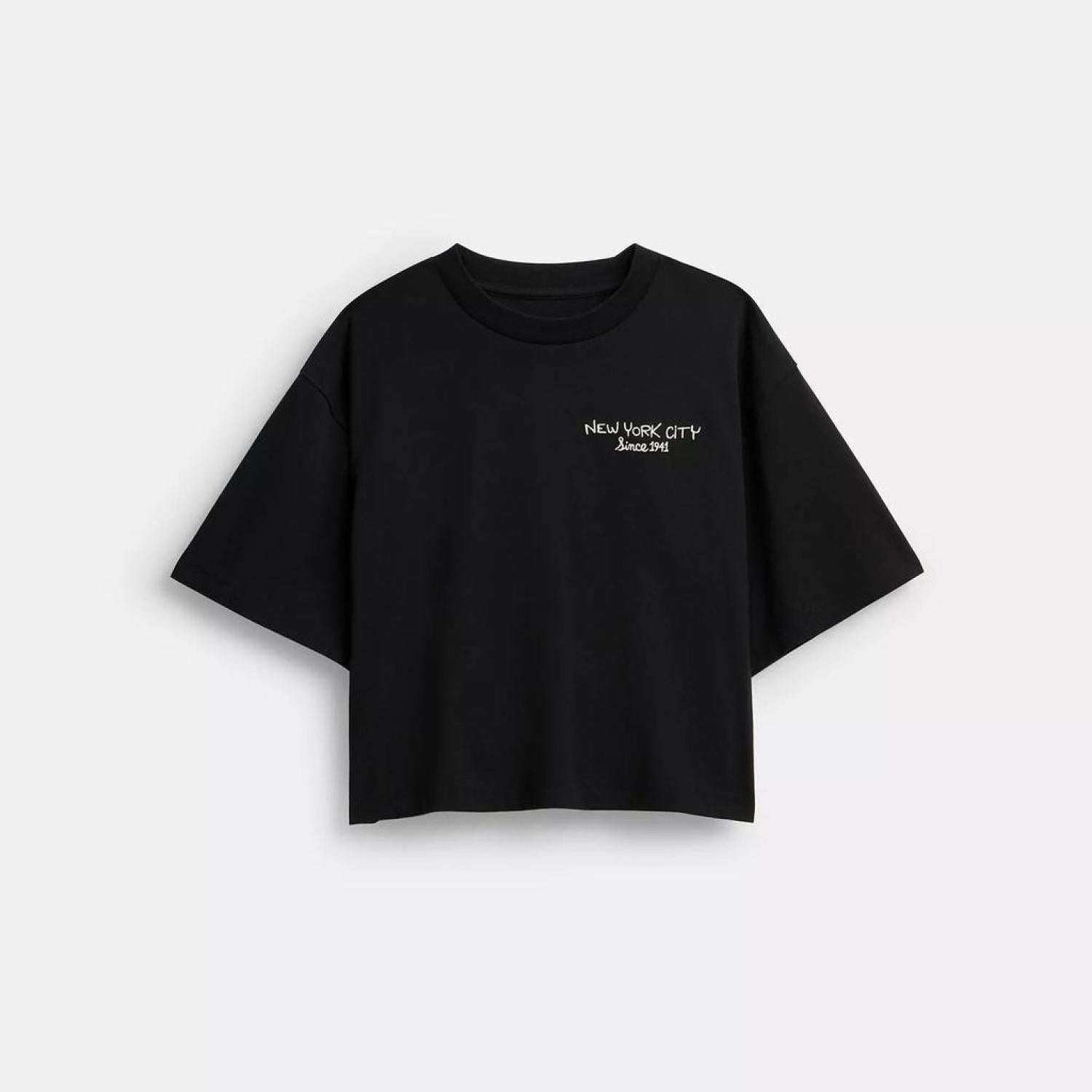 100% cotton Length - 20 1/2 Machine wash Model is 5'10 (178cm) chest 31 (79cm) waist 24 (61cm) hips 35 (89cm) and wears a size S Style No. CT625 | Coach Outlet New York Art School Cropped T-Shirt - Black, Size - X-Small