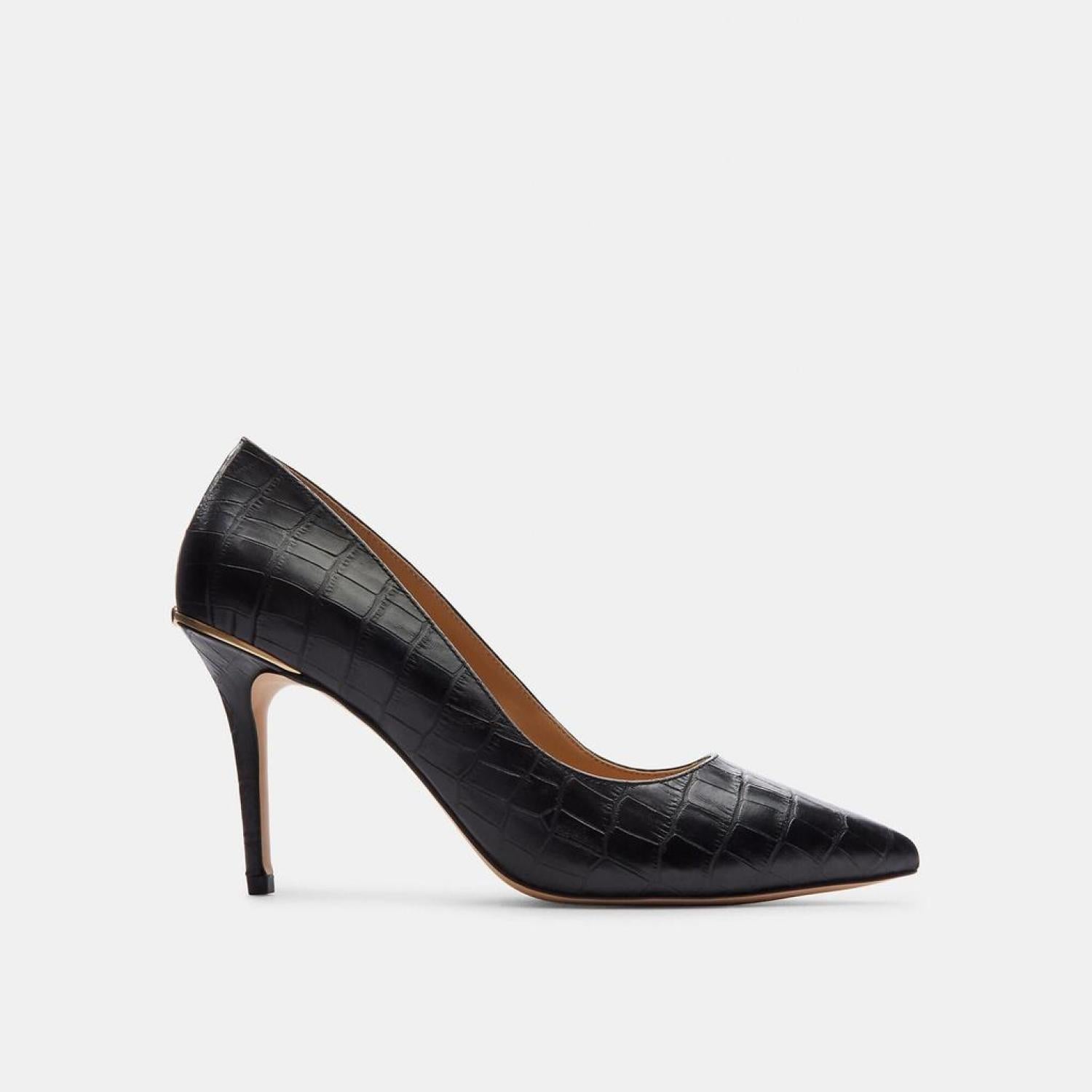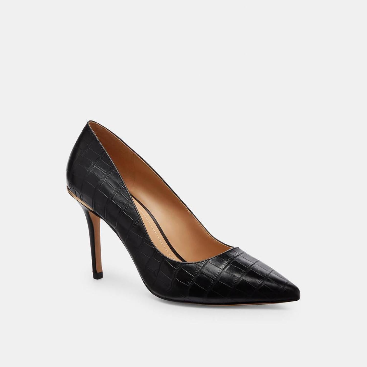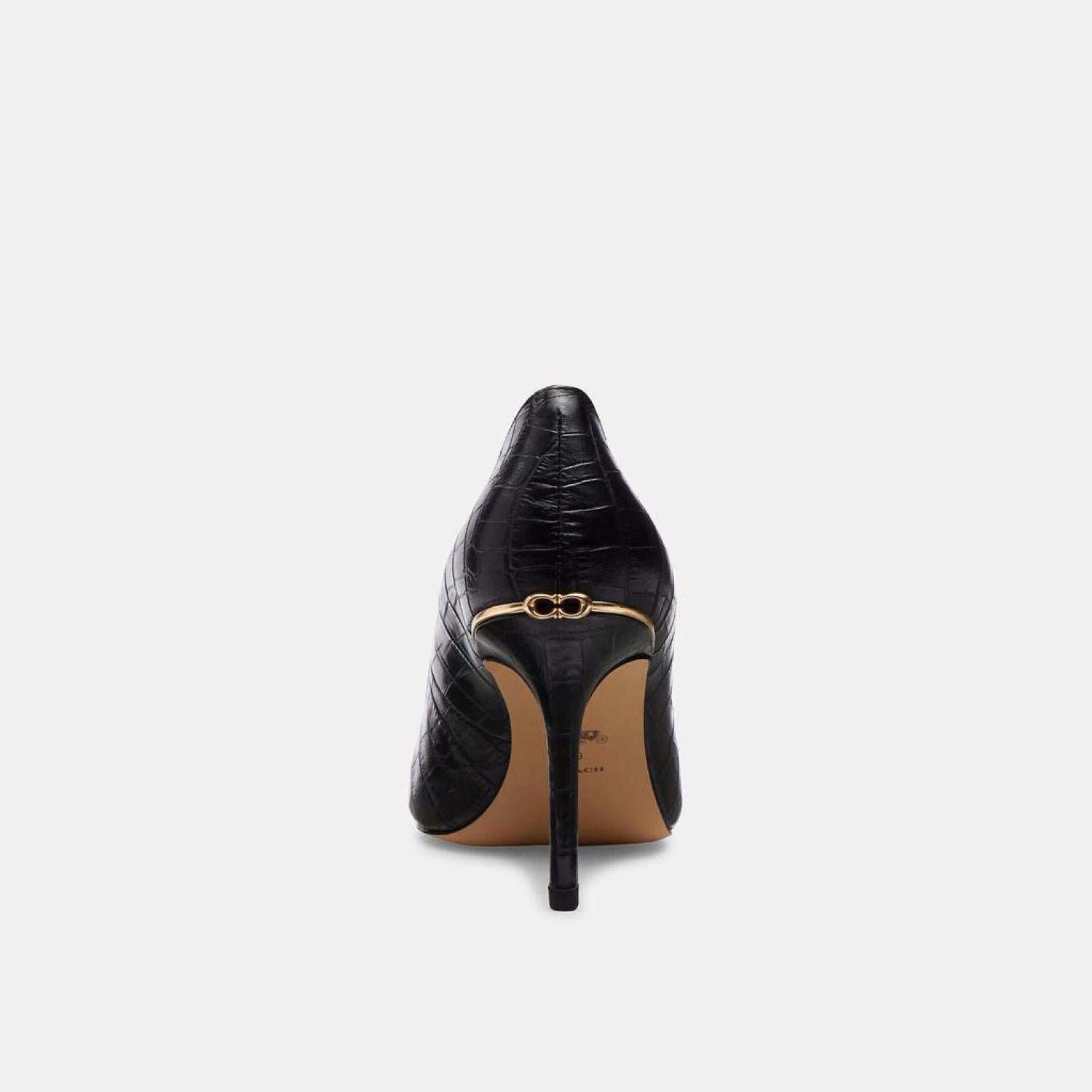 • Leather upper Man-made leather lining and footbed Rubber outsole Slip on 3 1/2 heel Style No. CM687 | Coach Outlet Wiley Pump - Black, Size - 9.5