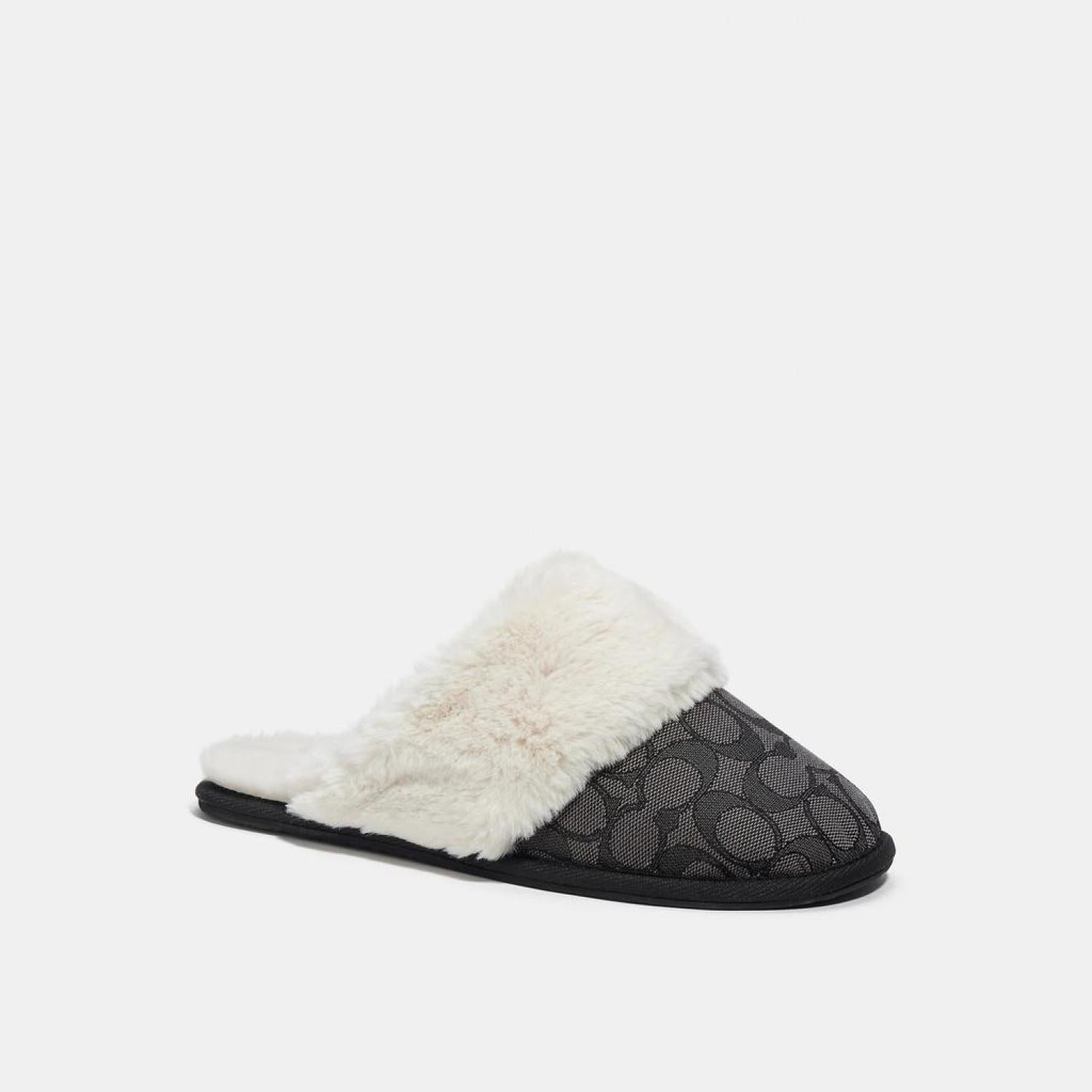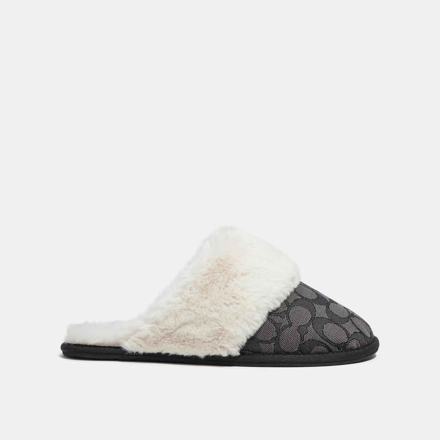 Signature jacquard and faux fur upper Faux fur lining and footbed Rubber outsole Slip on This Coach piece is crafted of our Signature jacquard made from a blend of organic cotton and recycled polyester Style No. CD319 | Coach Outlet Ziva Slipper In Signature Jacquard - Black, Size - 8