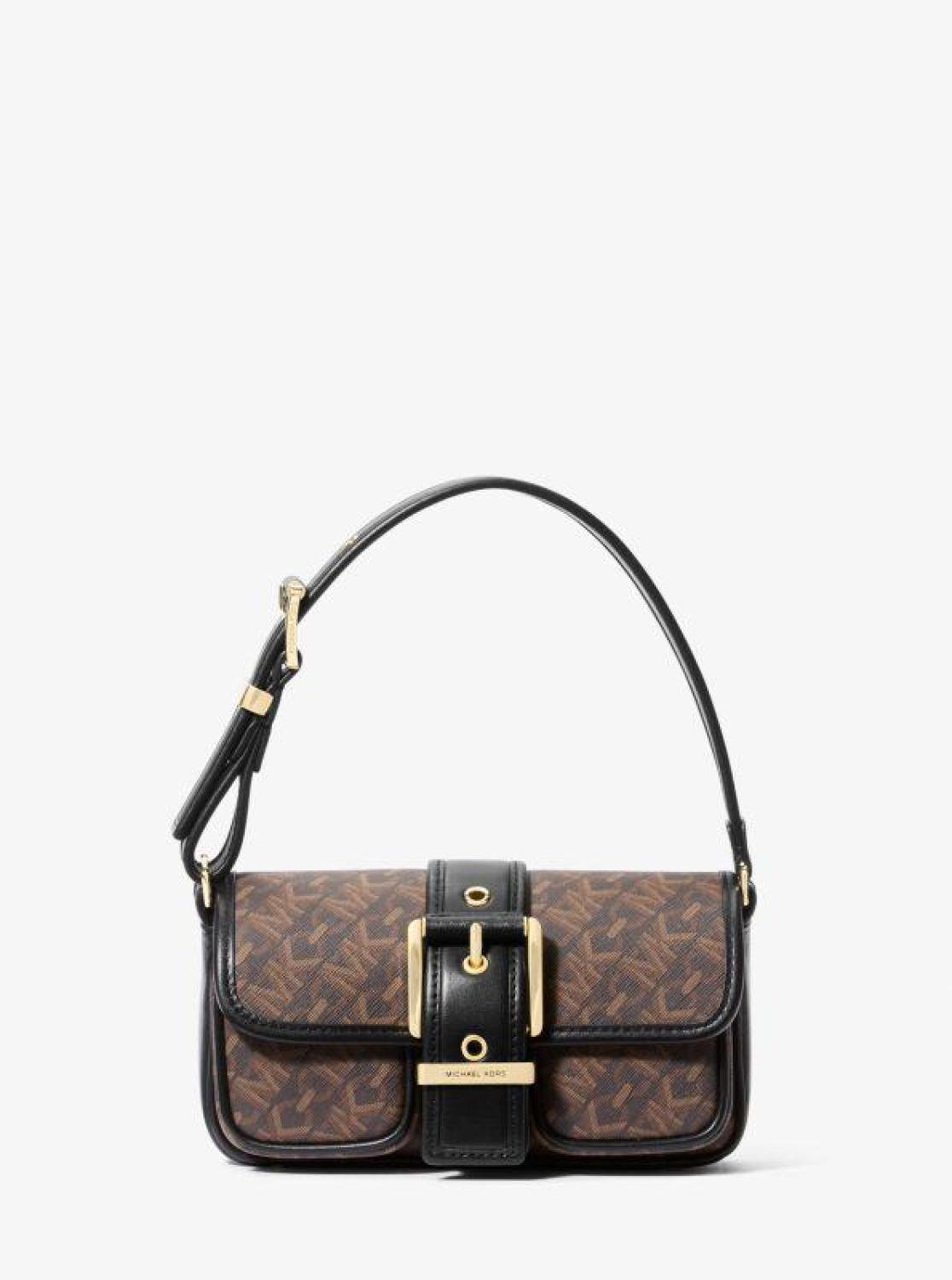 • The modern-yet-classic Colby shoulder bag evokes a cool, New York-inspired sensibility. Now in a chic mini size, it has the same sleek rectangular silhouette and bold buckle accent as its predecessor. Splashed with our Empire Signature Logo print, it’s designed to fit just the essentials—phone, wallet, keys, lipstick—but boasts several exterior and interior compartments to keep everything organized.