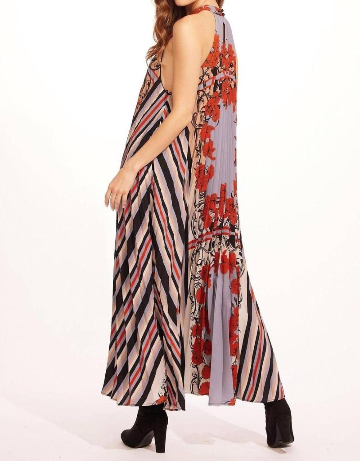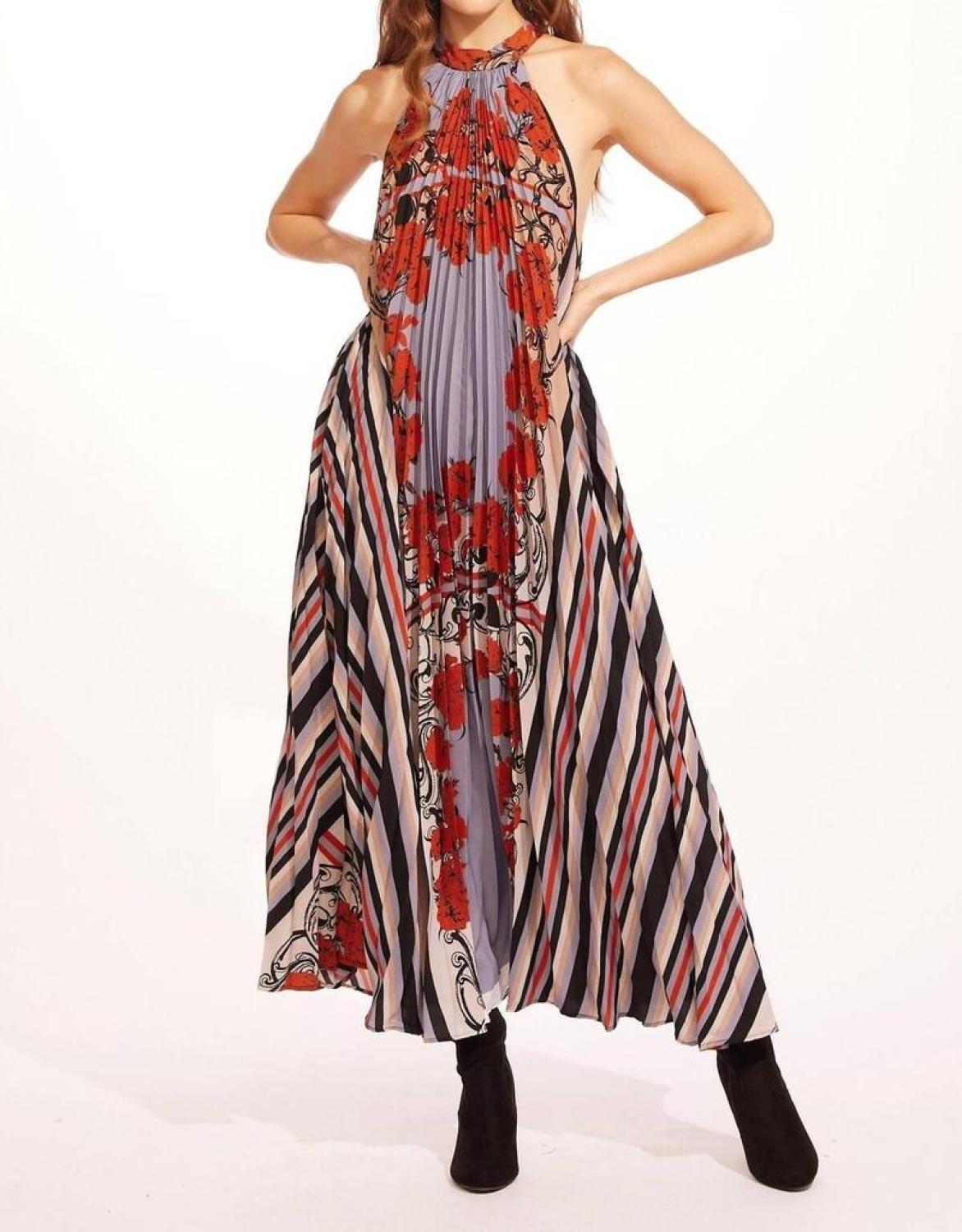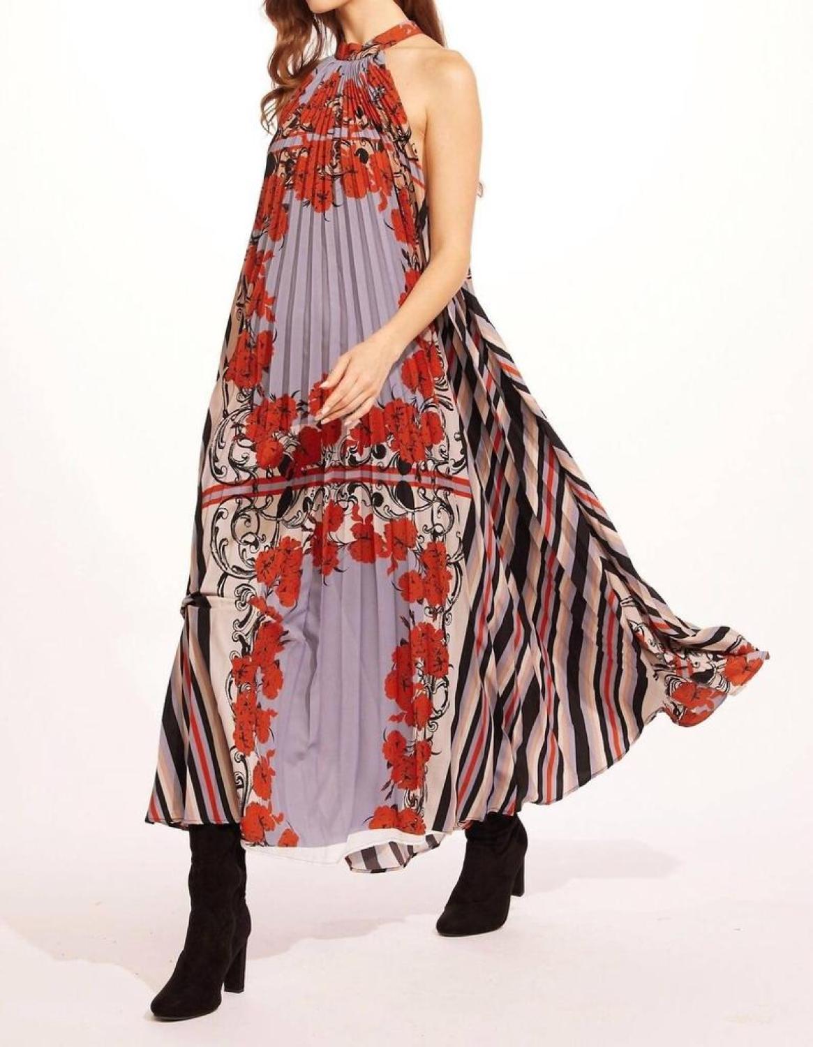 Who doesn't love a good maxi dress? This one you'll be reaching for season after season.Crafted with a pleated maxi length silhouette and dazzling halter neck featuring buttons in the back. 100% Polyester; 100% Polyester lining