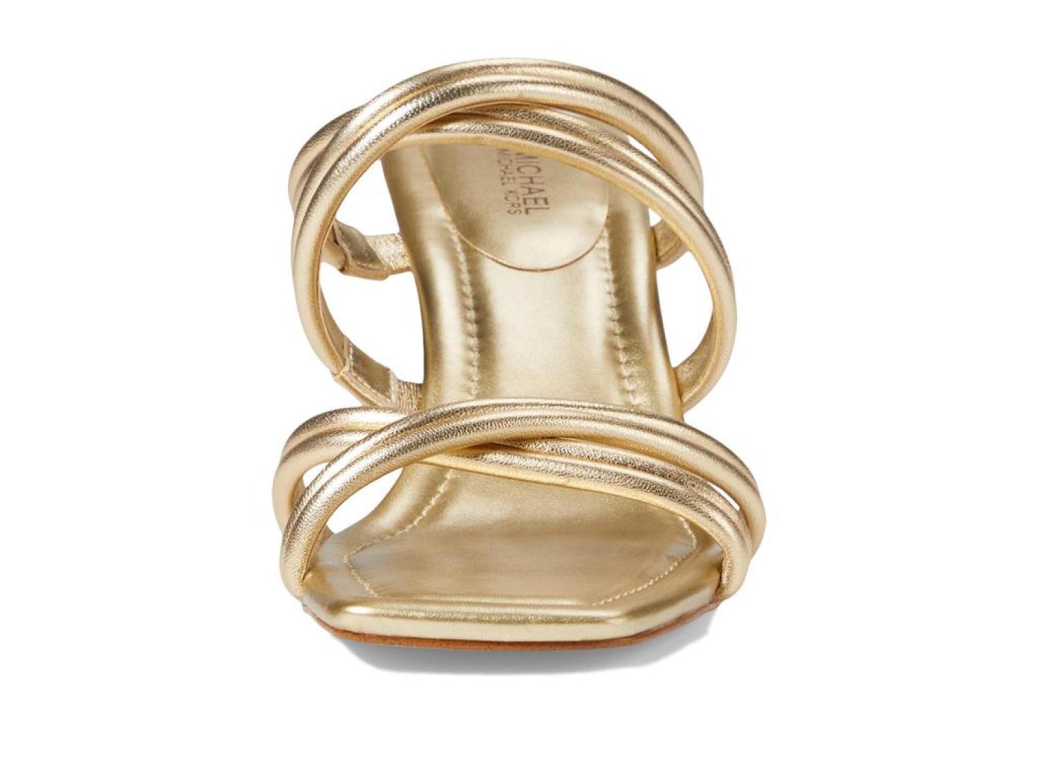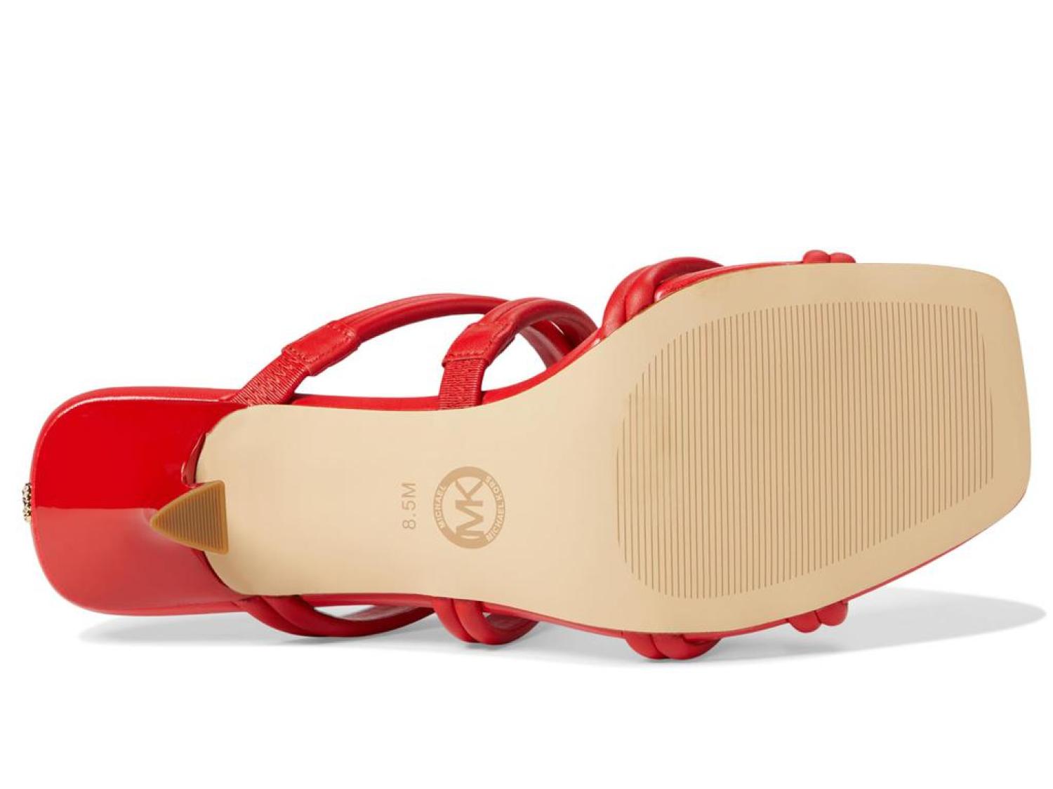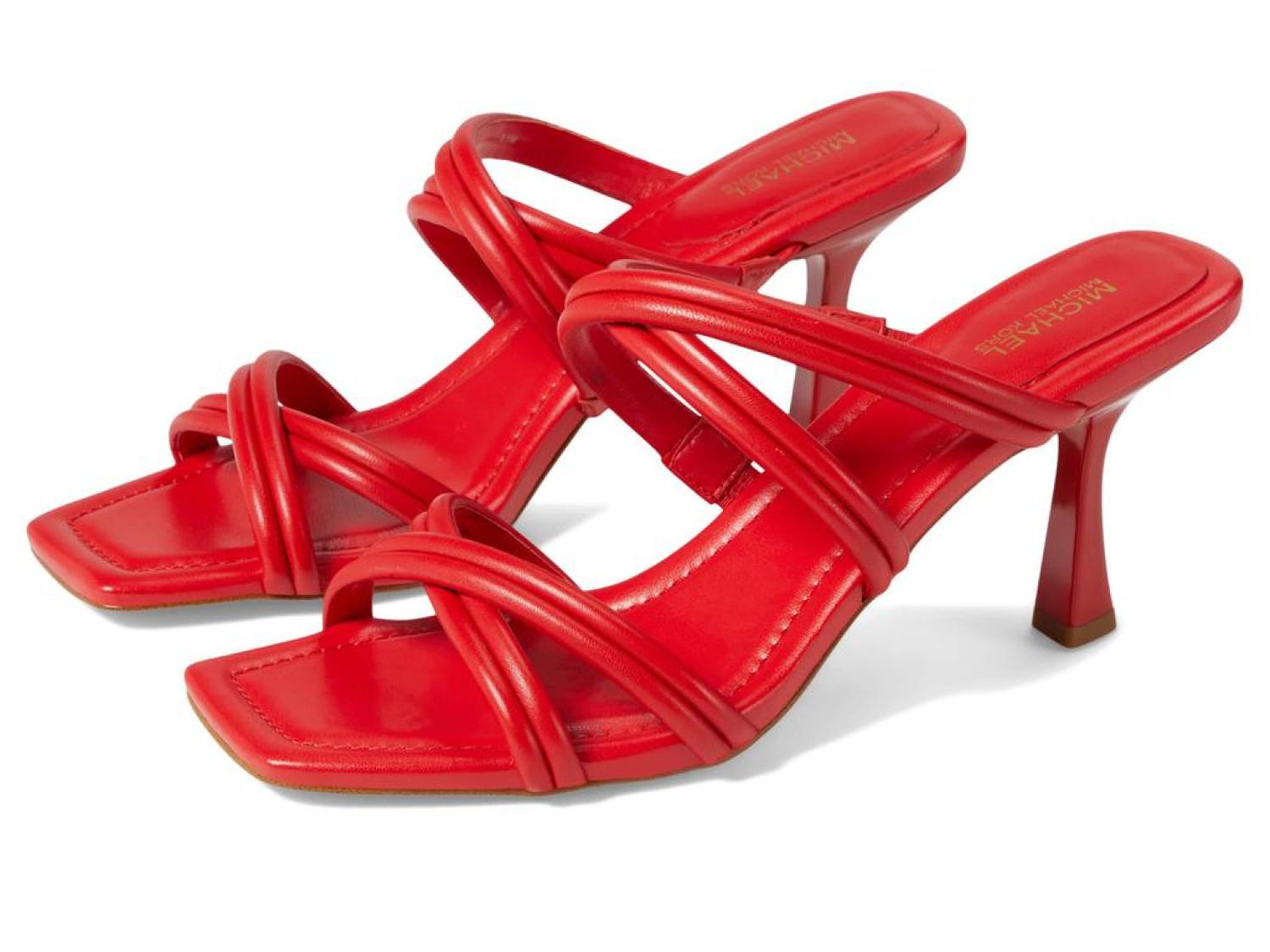 • Level up your fashion game by adding the MICHAEL Michael Kors® Corrine Sandal to your footwear collection. Perfect to be paired with all casual or party-wear outfits, the uber-chic sandals feature an open squared toe, strappy details, and a stiletto heel. The sandals are crafted with a leather upper, synthetic lining, and synthetic insole.