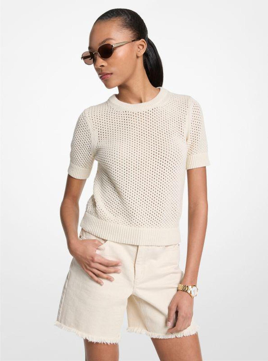 Cotton and Cashmere Mesh Short-Sleeve Sweater
