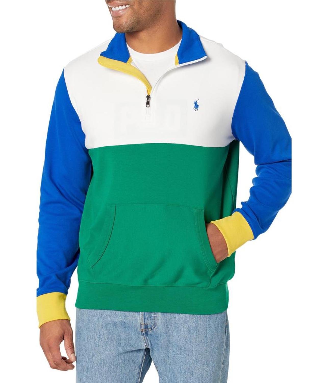 Wrap yourself in warmth and comfort wearing the Polo Ralph Lauren® Cotton Interlock 1/4 Zip Sweatshirt. Crafted from cotton, this long sleeve hoodie has ribbed cuffs for a smart look. Mock neckline. Pullover style. Vented hem. Machine washable. Imported. Product measurements were taken using size MD. Please note that measurements may vary by size. Measurements: Length: 29 in Sleeve Length: 28 in-