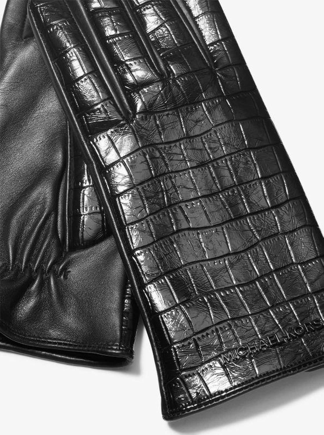 Crocodile Embossed Leather Gloves
