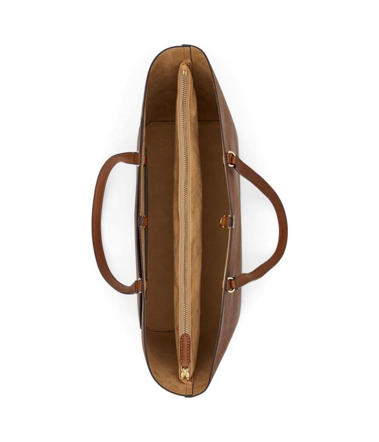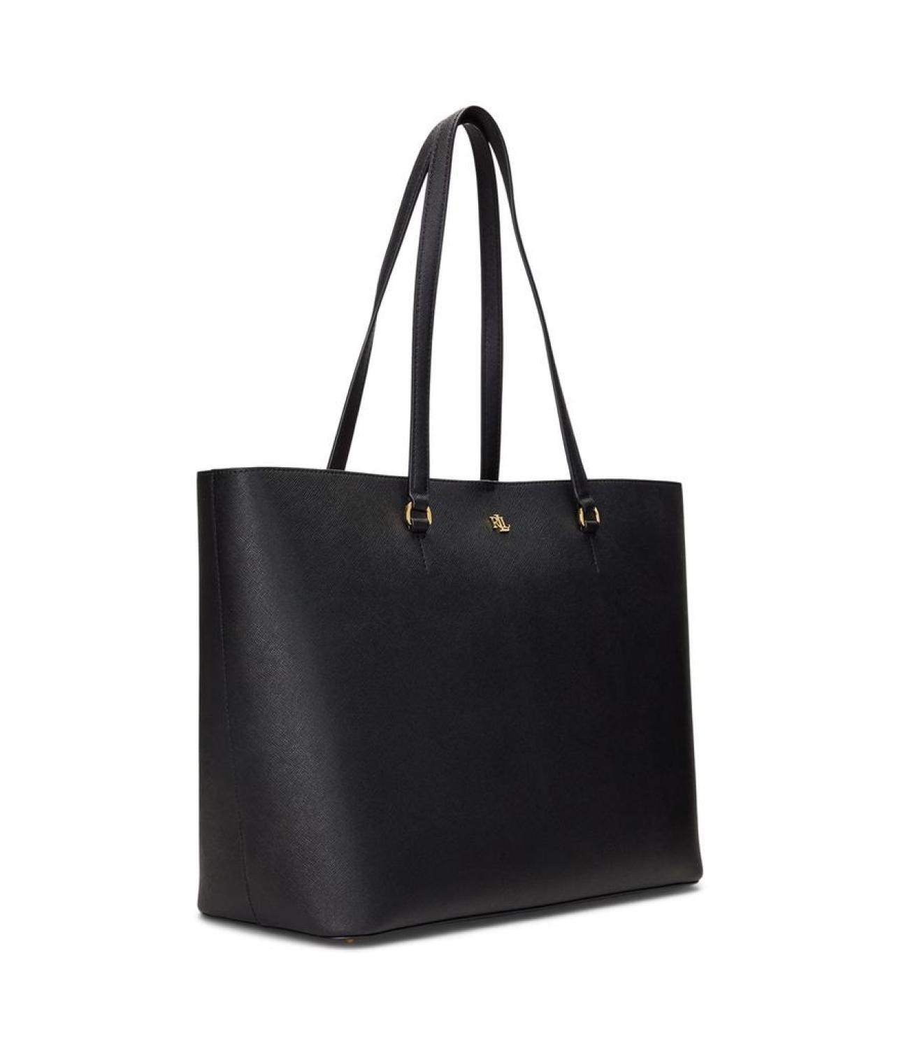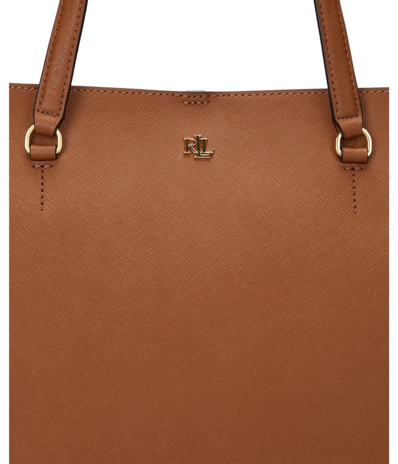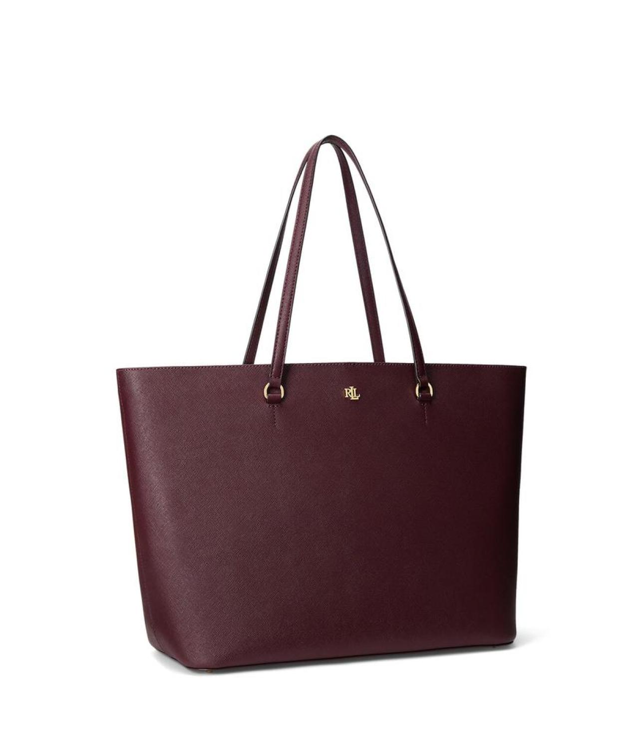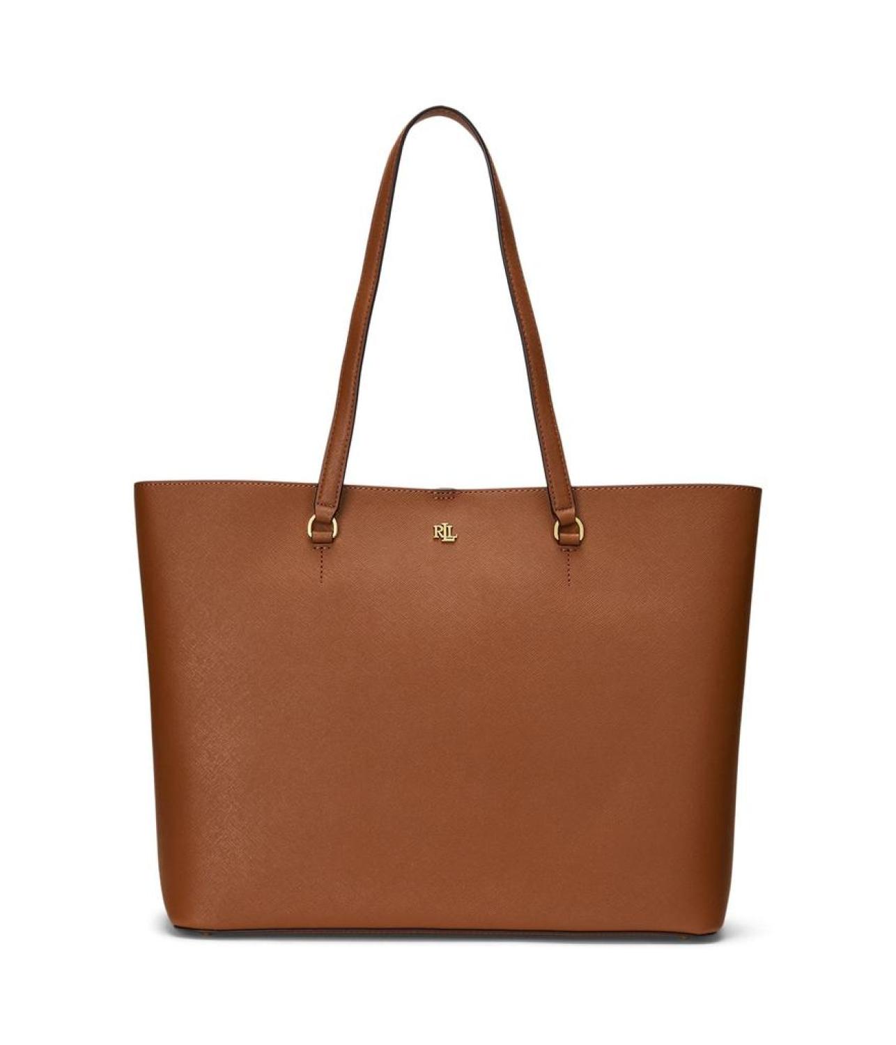 Designed for your sophisticated style, the LAUREN Ralph Lauren® Crosshatch Leather Large Karly Tote is spacious and convenient. Leather construction. Center zip compartment. Two top handles. "LRL" metal logo at the front. Dog-clip closure. Polyester lining. Exterior slip pocket. Interior slip pocket. Imported. Please note, the hardware color and interior lining may differ from the color shown in the photo.