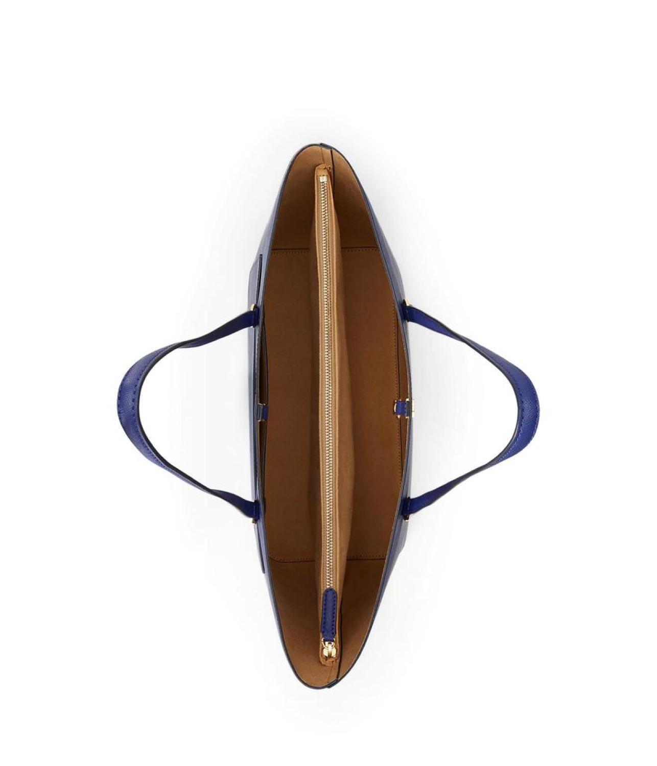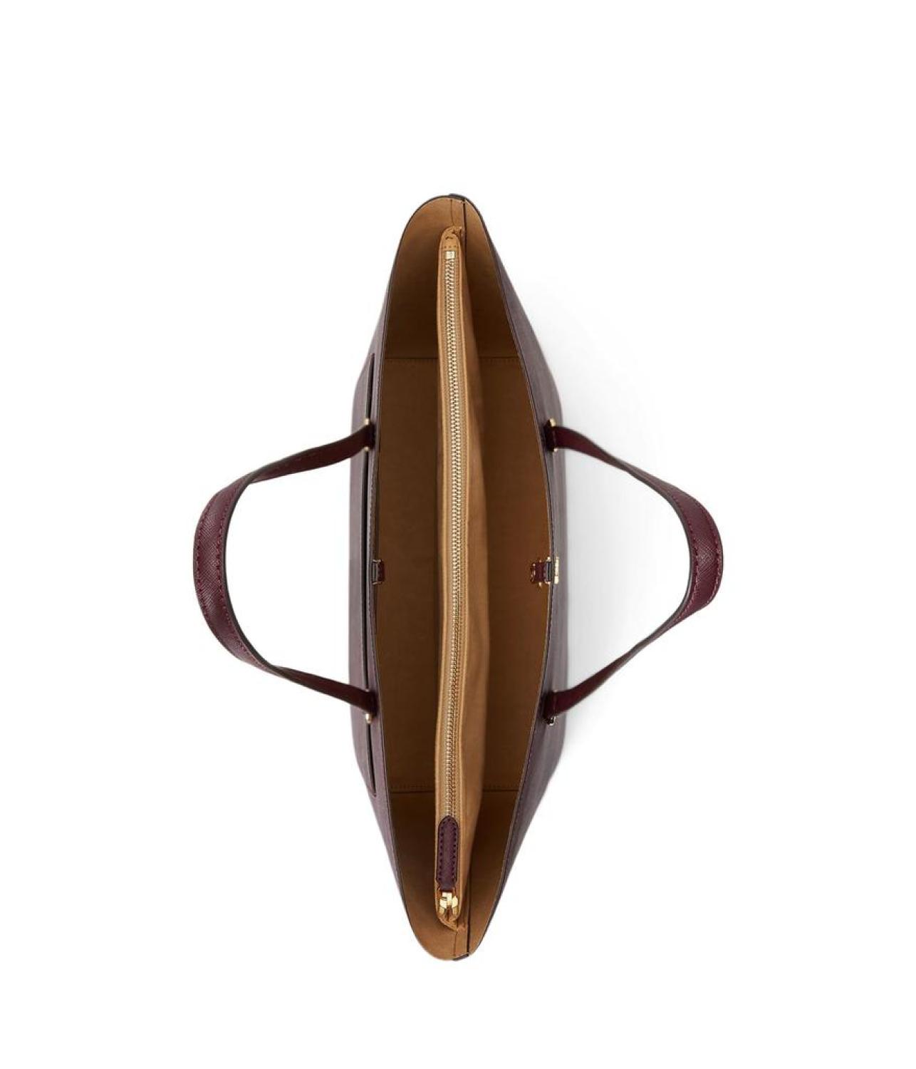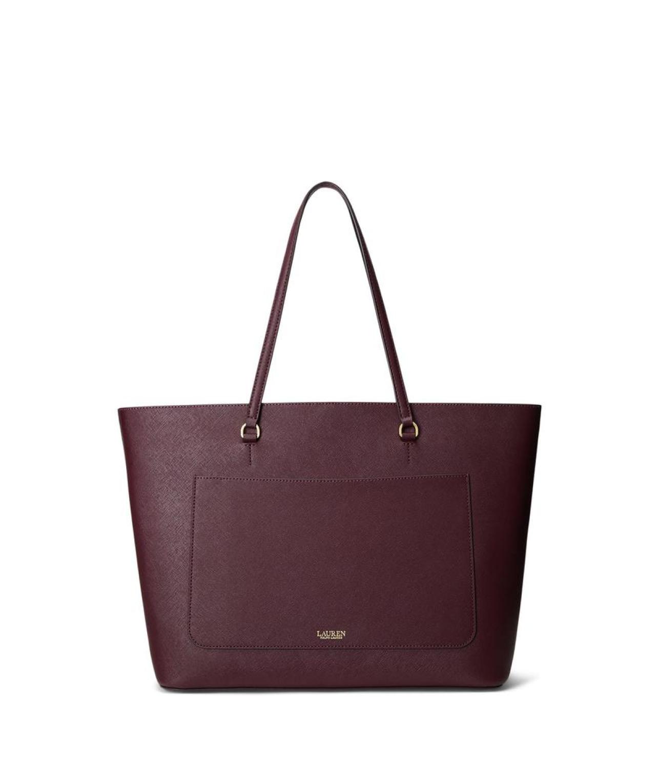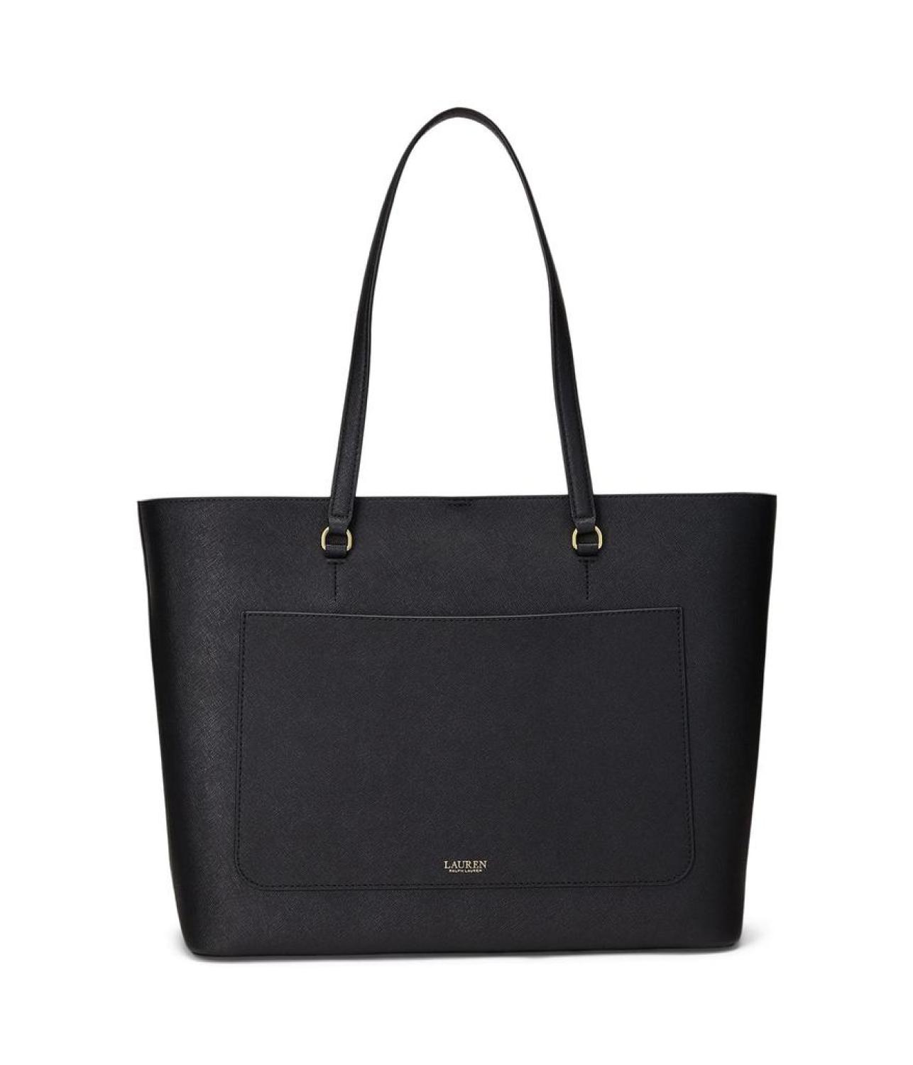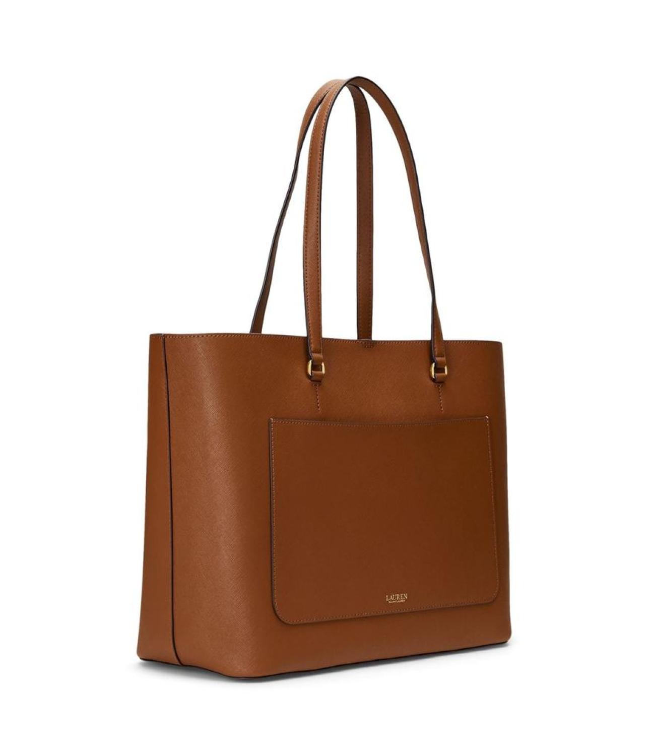 Designed for your sophisticated style, the LAUREN Ralph Lauren® Crosshatch Leather Large Karly Tote is spacious and convenient. Leather construction. Center zip compartment. Two top handles. "LRL" metal logo at the front. Dog-clip closure. Polyester lining. Exterior slip pocket. Interior slip pocket. Imported. Please note, the hardware color and interior lining may differ from the color shown in the photo.