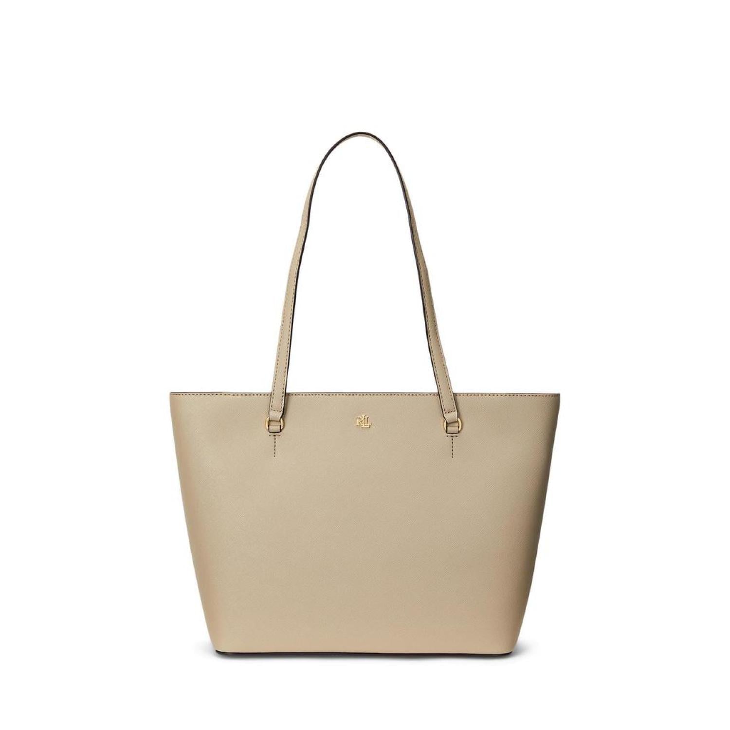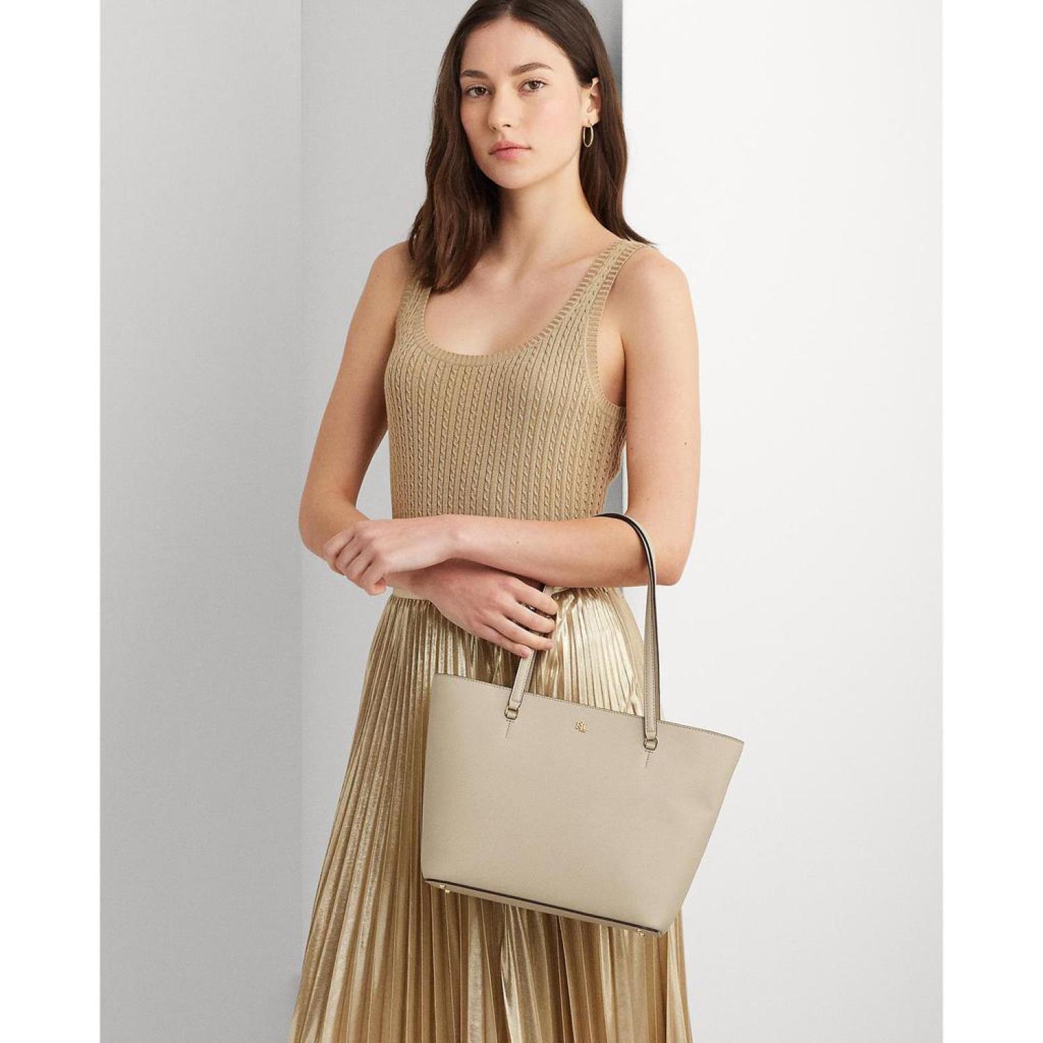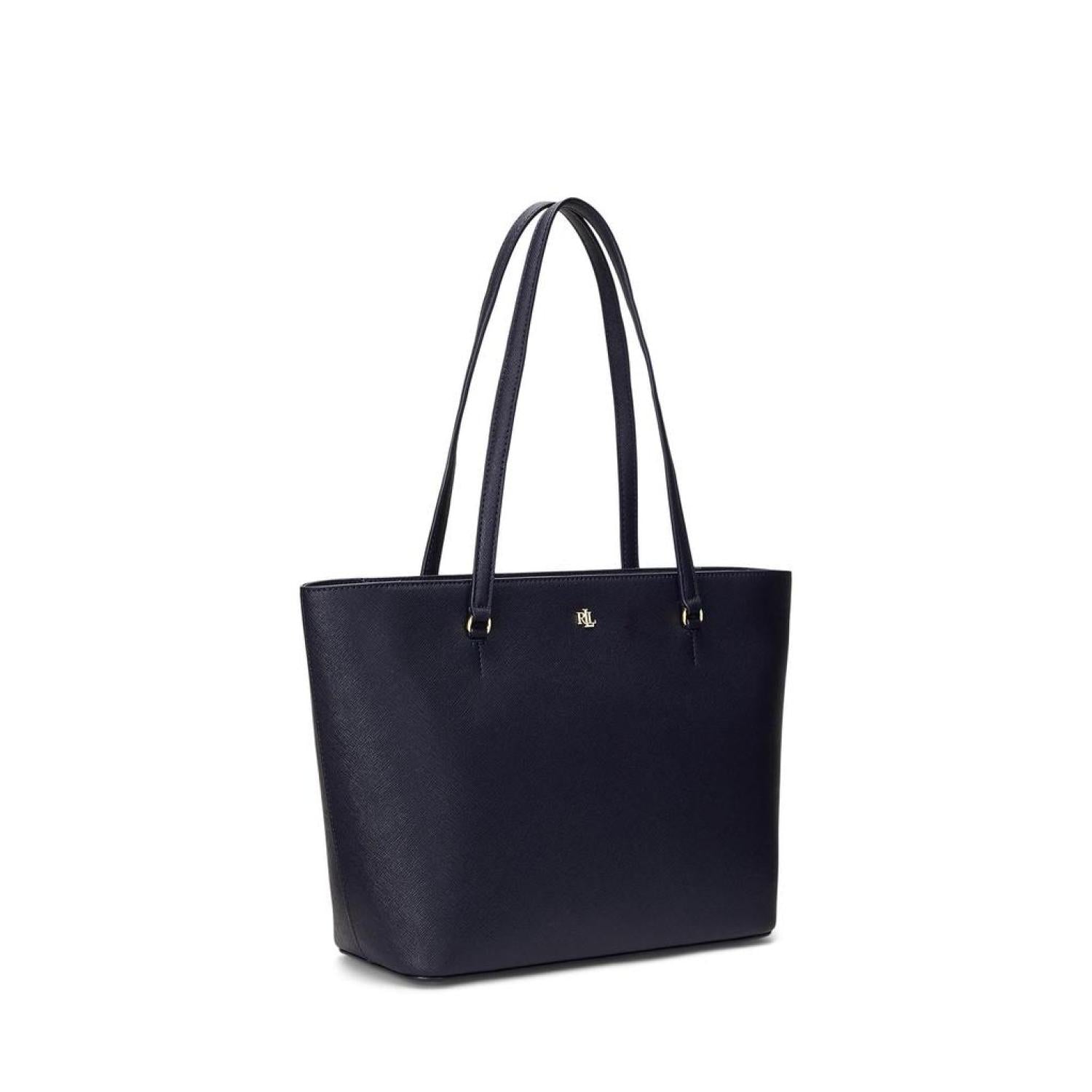 • A versatile and enduring must-have accessory, the LAUREN Ralph Lauren® Crosshatch Leather Medium Karly Shopper Tote  is detailed with a metal "LRL" logo at the front for a signature touch. Crafted with crosshatch leather for subtle texture and refined style. It's designed with a spacious silhouette and a myriad of pockets for storing your essentials.