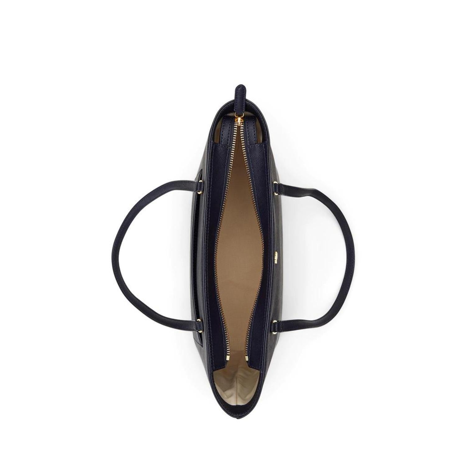 Foil-printed "Lauren Ralph Lauren" logo at the exterior slip pocket.