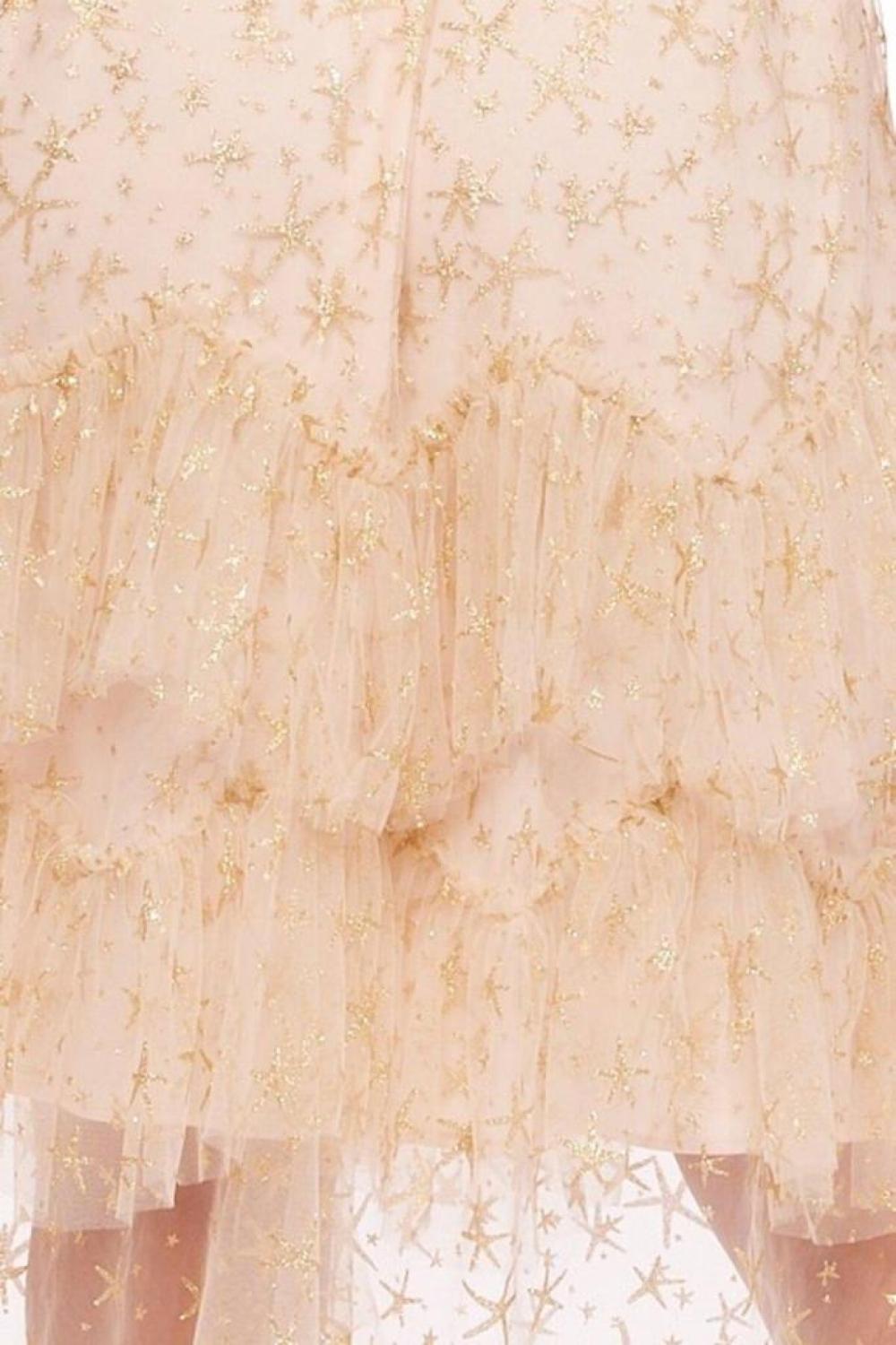 • Just add slides or mules and you are good to go.Easy details of a prairie dress with the gossamer details of a ballet gown. A surplice front and smocked waist combine with floaty layered angel sleeves and a layered tiered skirt. The pull-over, midi length dress ties with a bow at the nape of the neck.Dry clean. 100% Polyester. Made in USA.