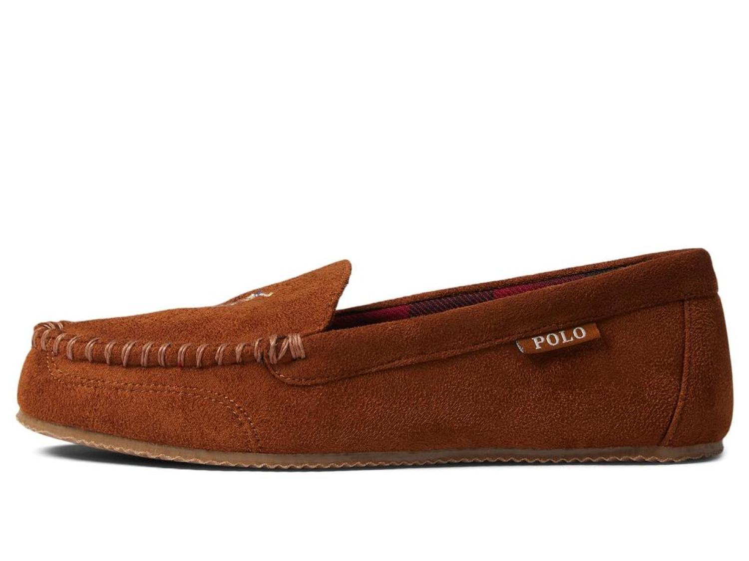 Get an attractive teddy bear look with the Polo Ralph Lauren® Dezi V Moccasin Slipper. Textile upper, lining, and insole. Adorable stitched detail. Round toe with stitching detail. TPR outsole. Imported. Product measurements were taken using size 8, width M. Please note that measurements may vary by size. Measurements: Weight: 5 oz-