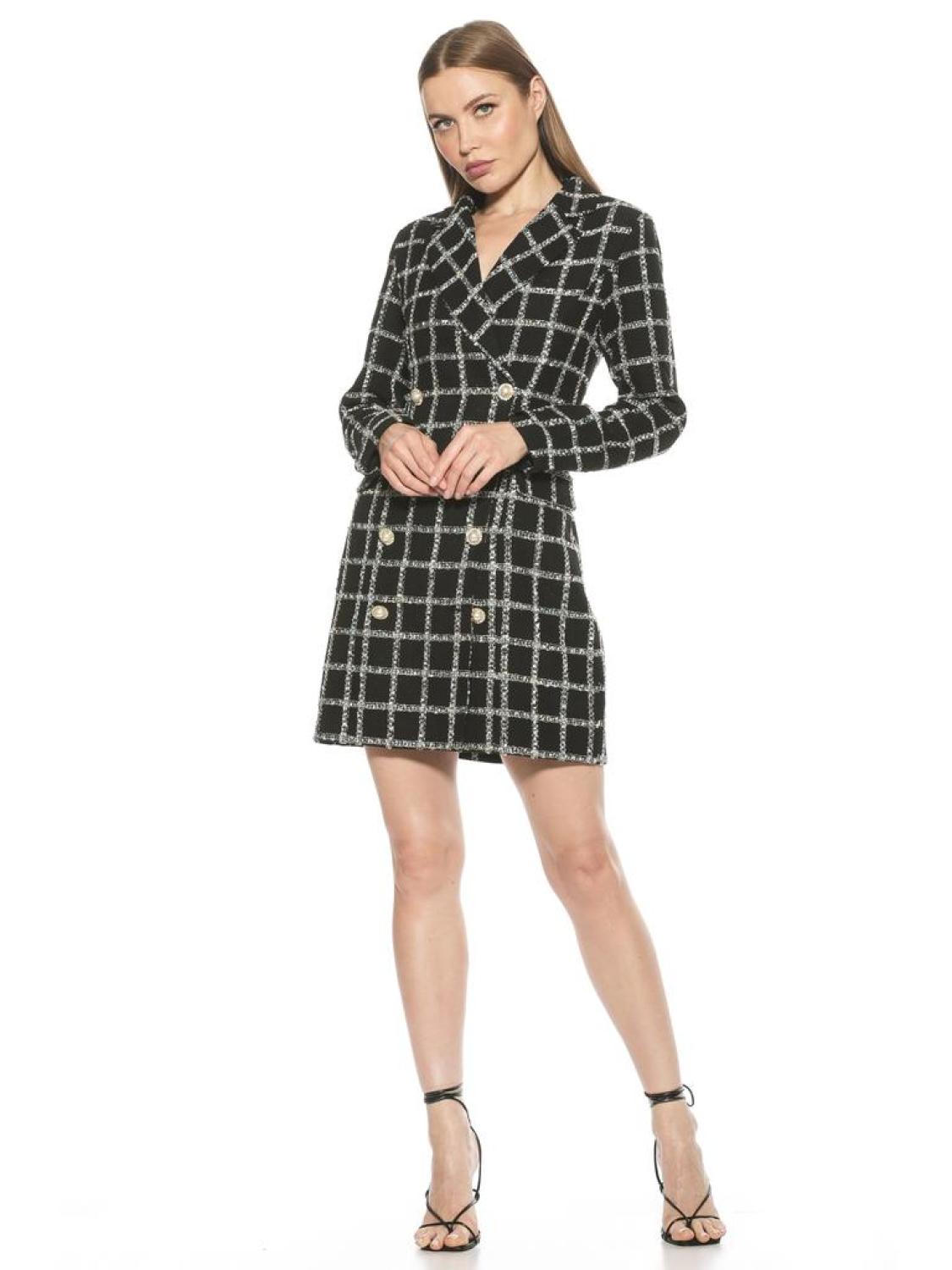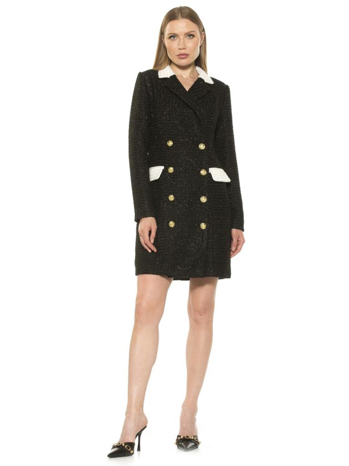Introducing the Diana Dress tweed mini dress. Its blazer-style silhouette gives a sophisticated finish, while the long sleeves bring a timeless touch, creating an effortless look that's perfect for any occasion.PRODUCT FEATURES Gold Button Tweed Long Sleeve Blazer Dress Mini Dress 90% Polyester, 10% Acrylic Lining - 97% Polyester, 3% Spandex Hand Wash Imported Style D5017