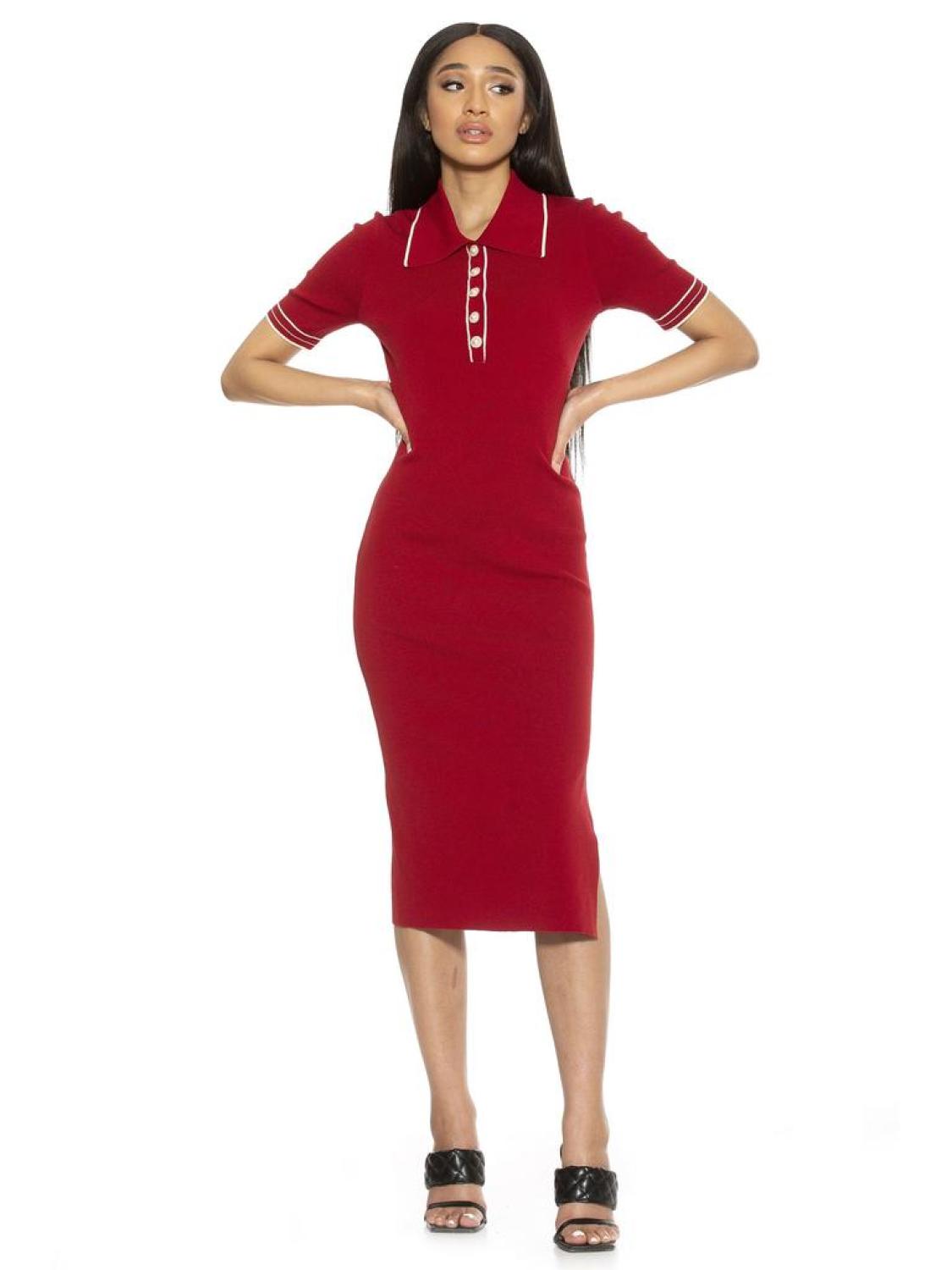 PRODUCT FEATURES Body Dress 45 5/8" length Spread collar Short sleeves Front partial button closures Solid with stripes Knit construction Side slit 53% Viscose, 7% Polyester Hand wash, dry flat Imported Style D3930