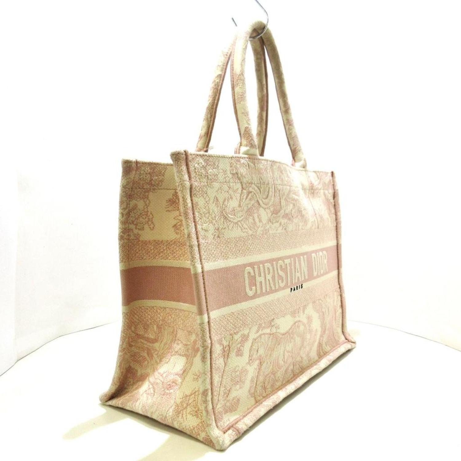 Brand - DiorModel - Book ToteColor - PinkMaterial - CanvasInclusions - /Dimensions - height - ~ 27 cm width - ~ 36 cm depth - ~ 17 cm handle - to the main body ~ 16 cm (measuring in the state at the time of shooting)Serial number - M1296ZTDT_M956Country of origin - ItalyCondition - AB - good condition.Elevate your style with the Christian Dior Book Tote Medium Bag, formerly Small, a delightful fusion of fashion and functionality in a charming white and pink color palette. Crafted from jacquard, the tote boasts a chic design that effortlessly combines elegance with practicality. However, it's essential to note its condition - the exterior showcases some stains, a slight loss of shape, and slight fluffing overall, with some large stains on the bottom, back, and handles. Inside, the tote reveals some light soiling overall, with large stains on the bottom and back, emphasizing a lived-in charm that adds character to this stylish and versatile accessory.We recommend that you look at all the pictures before making your purchase to ensure that you are satisfied with the condition of the item.