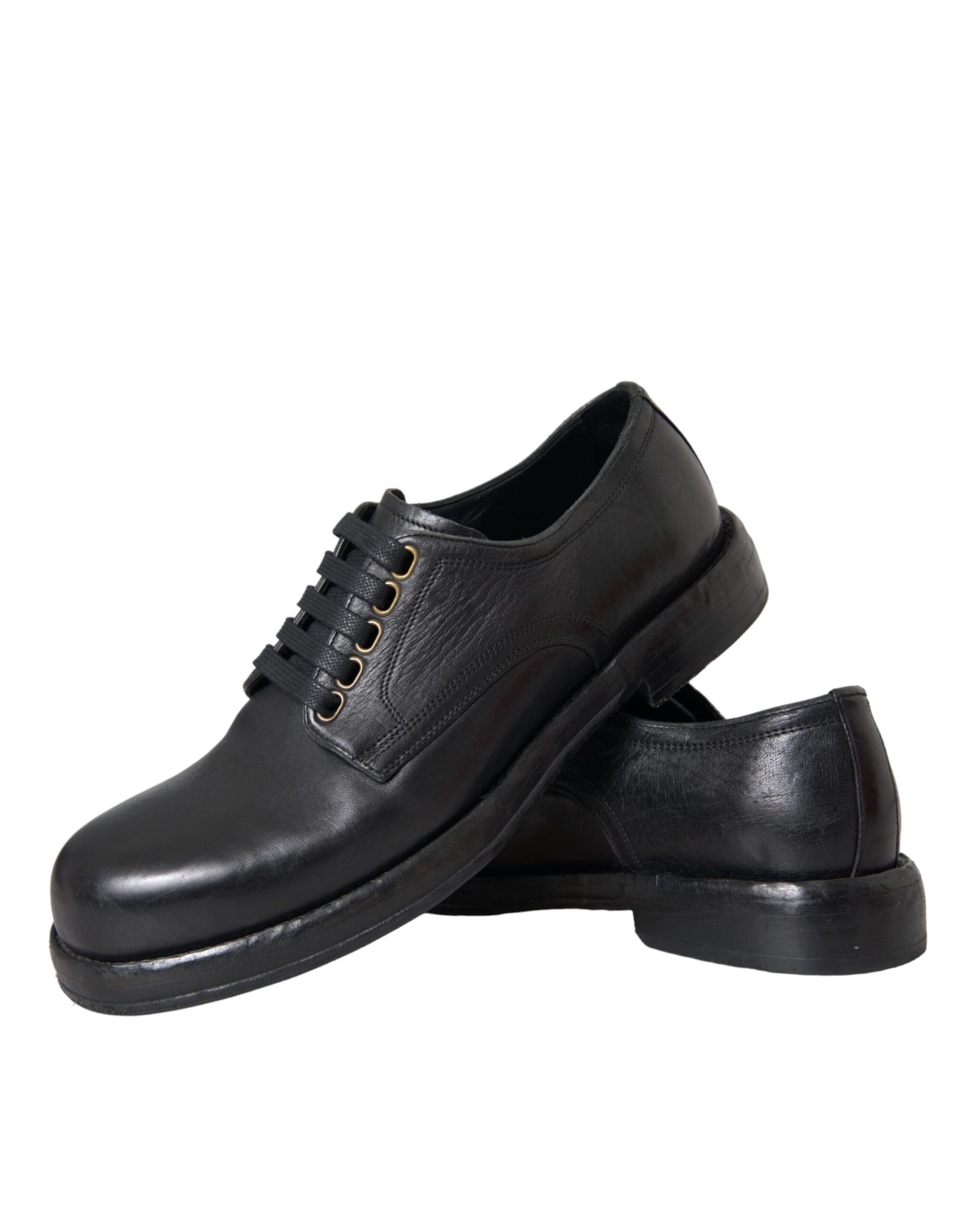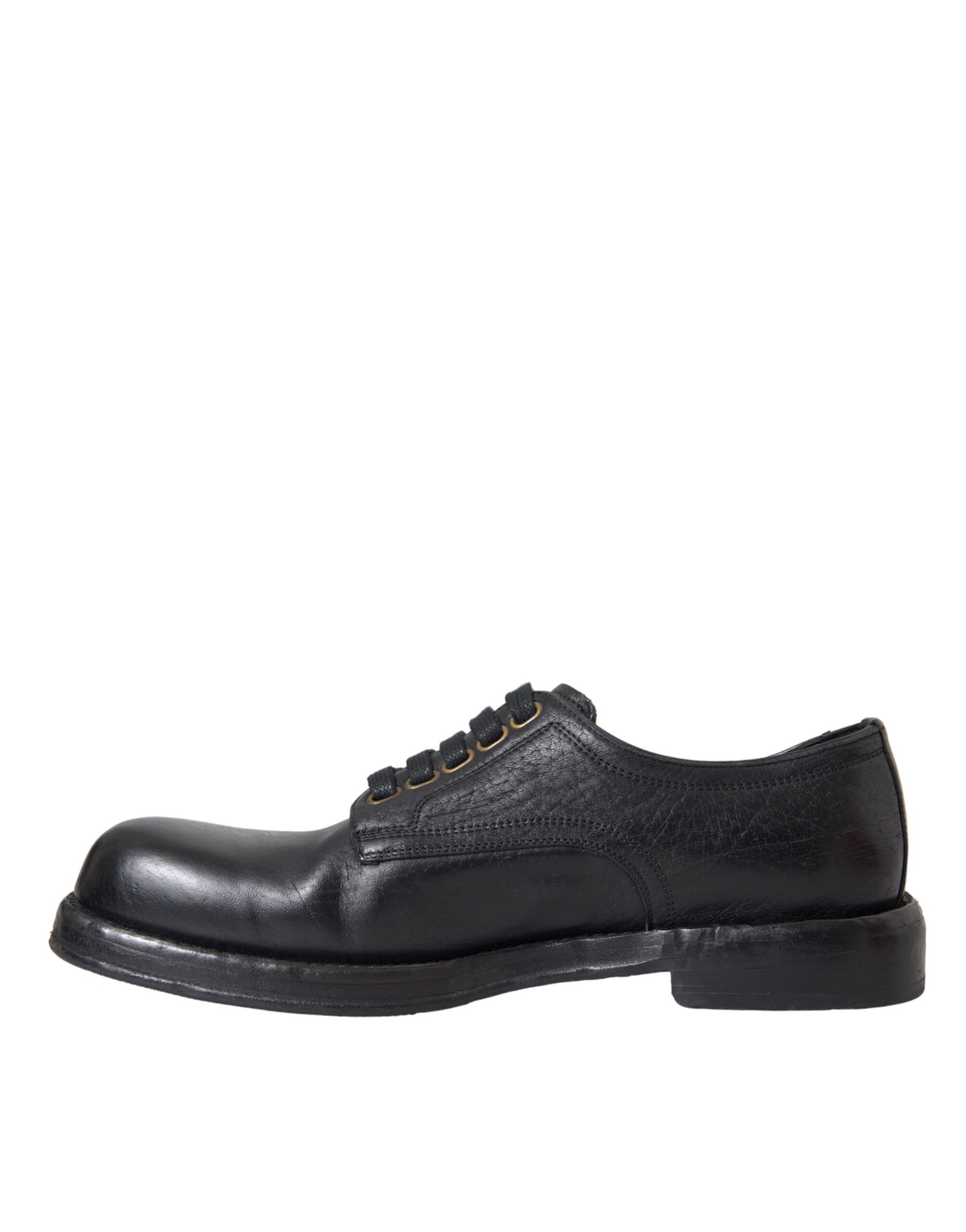 Dolce & Gabbana Black Horse Leather Derby Men Dress Shoes